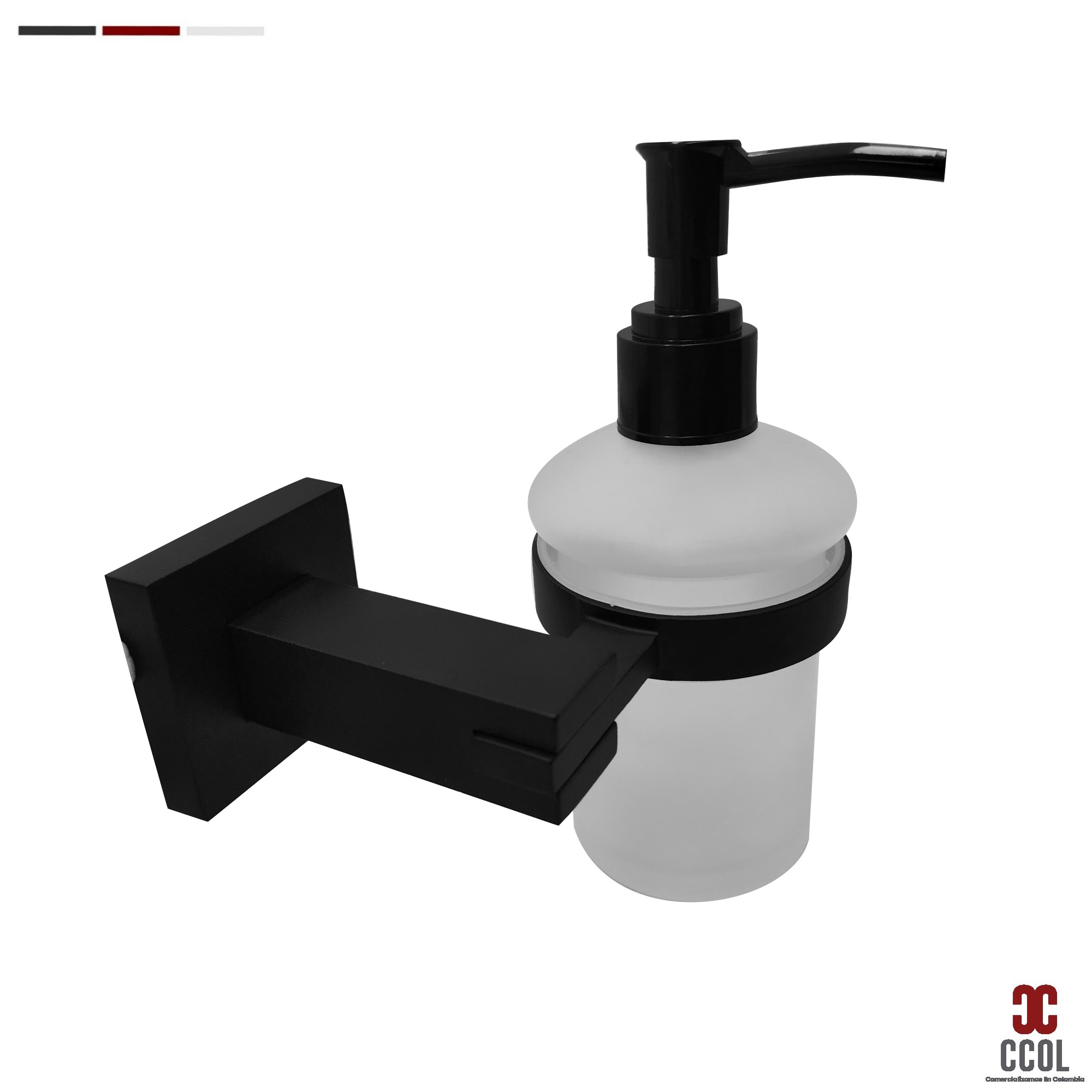 - Dispensador de jabón de base cuadrada en acabado negro mate, garantiza durabilidad, resistencia y estética para darle un toque elegante a tus baños.