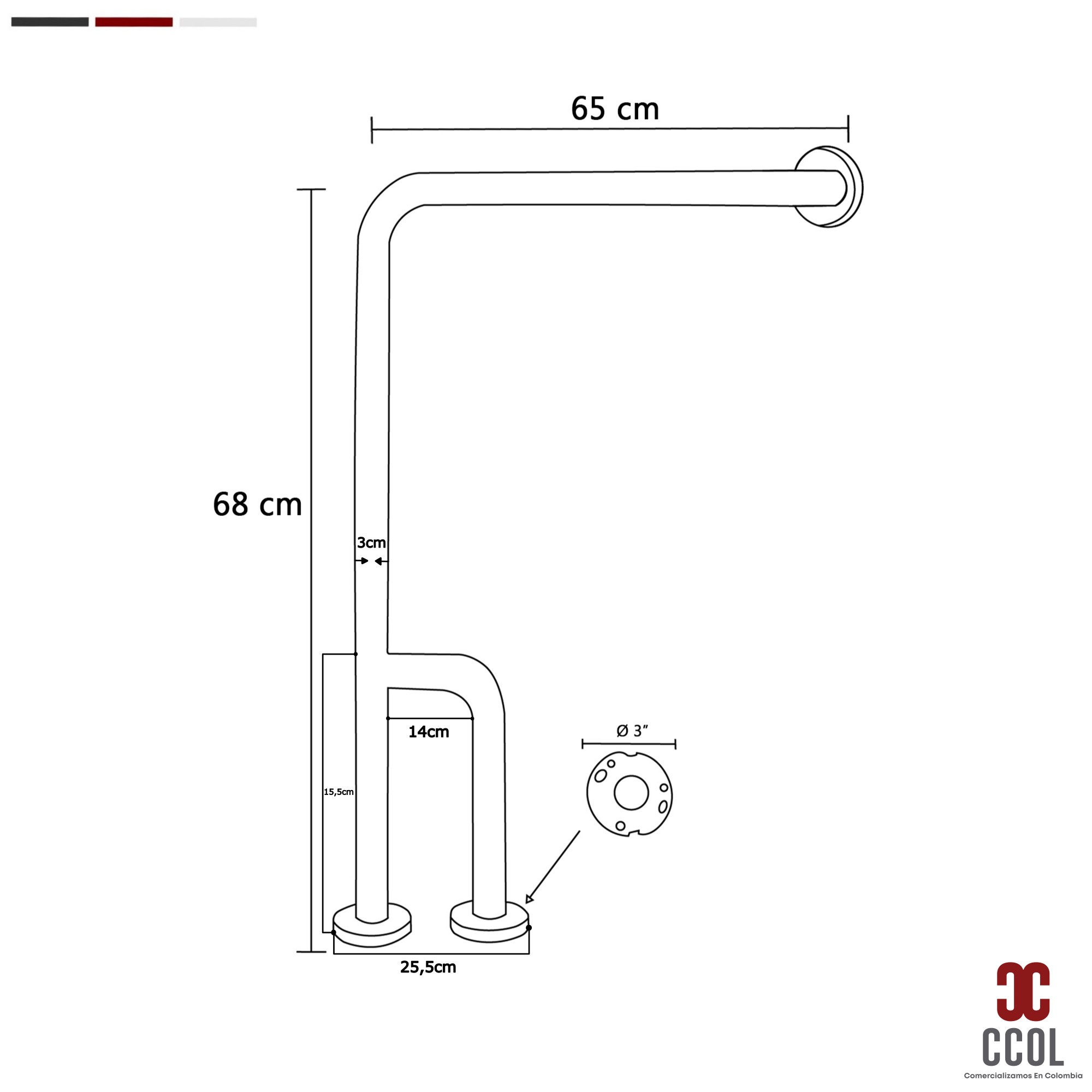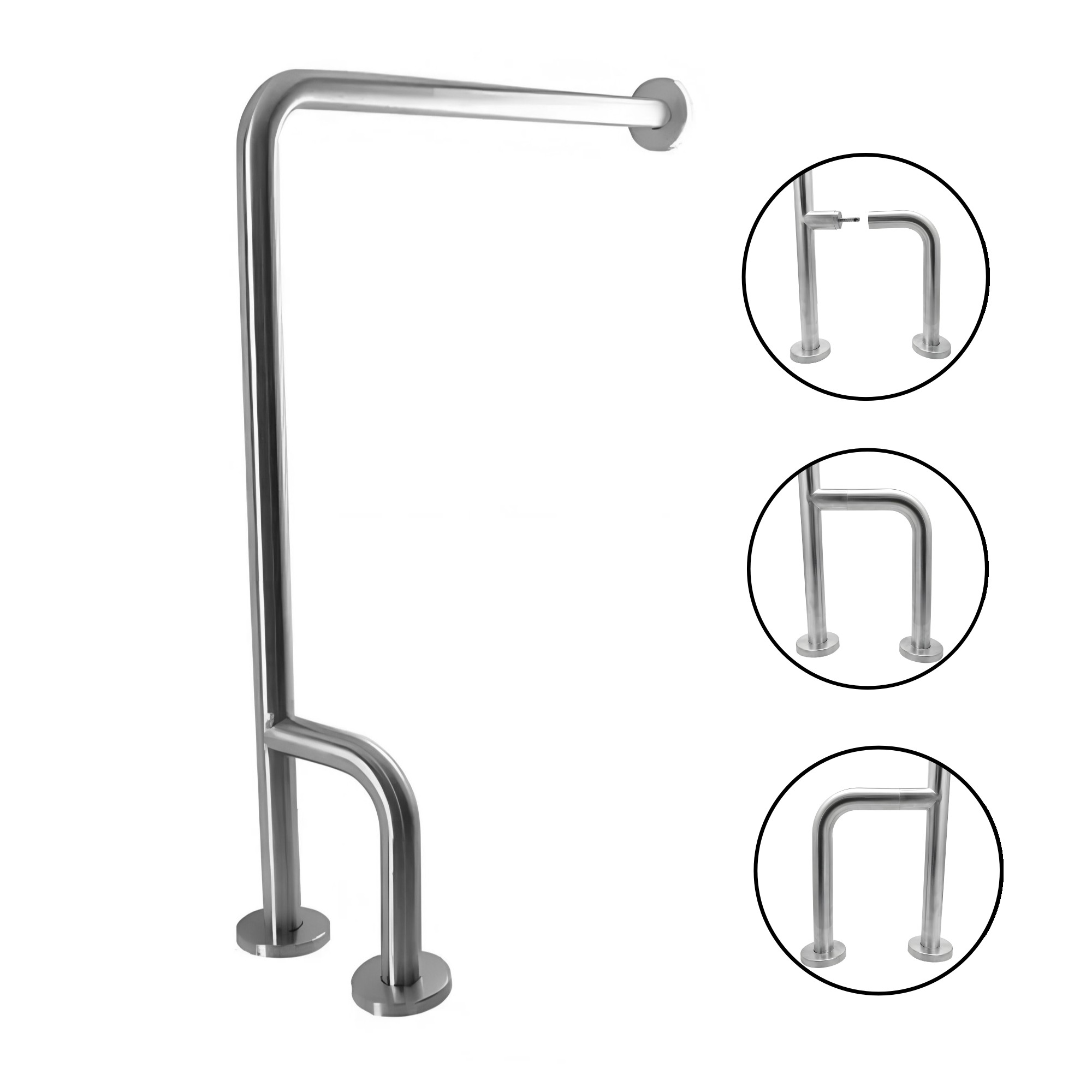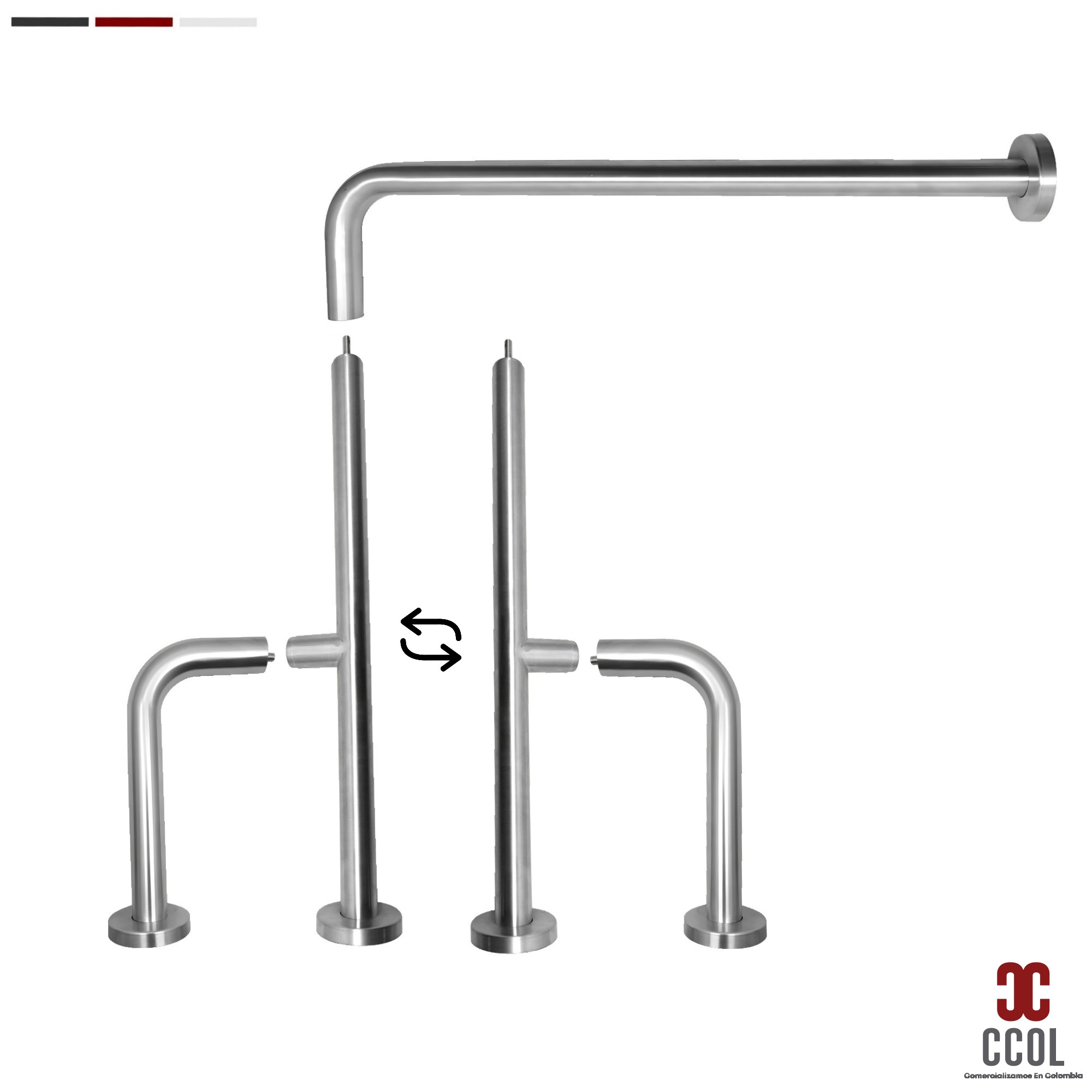 - Barra de seguridad en acero inoxidable 304 para fijación de piso a pared, ideal para entornos exigentes. Diseñada para ofrecer alta seguridad y resistencia, con un diámetro de tubo de 1 1/4 pulgadas para un agarre óptimo.