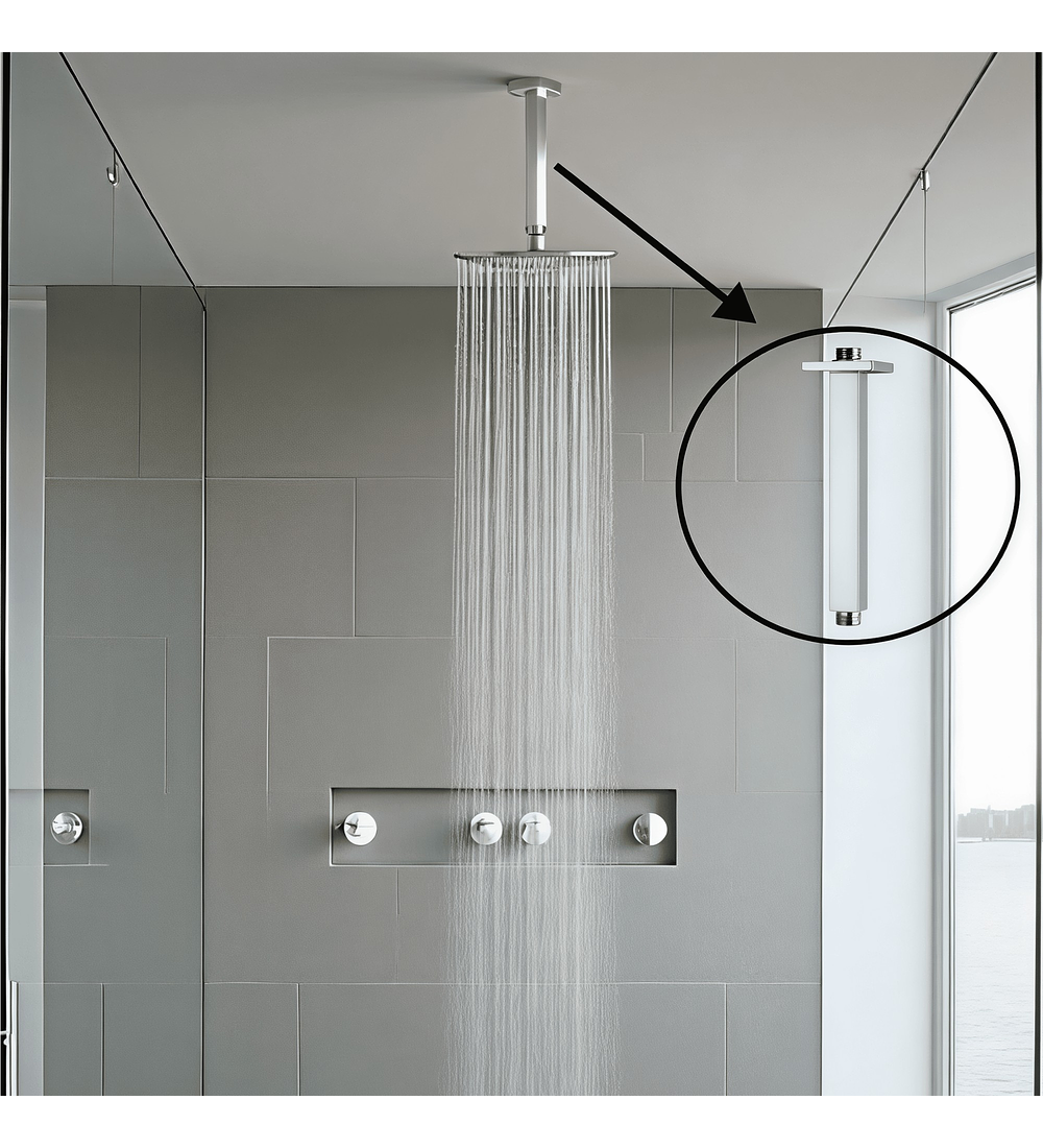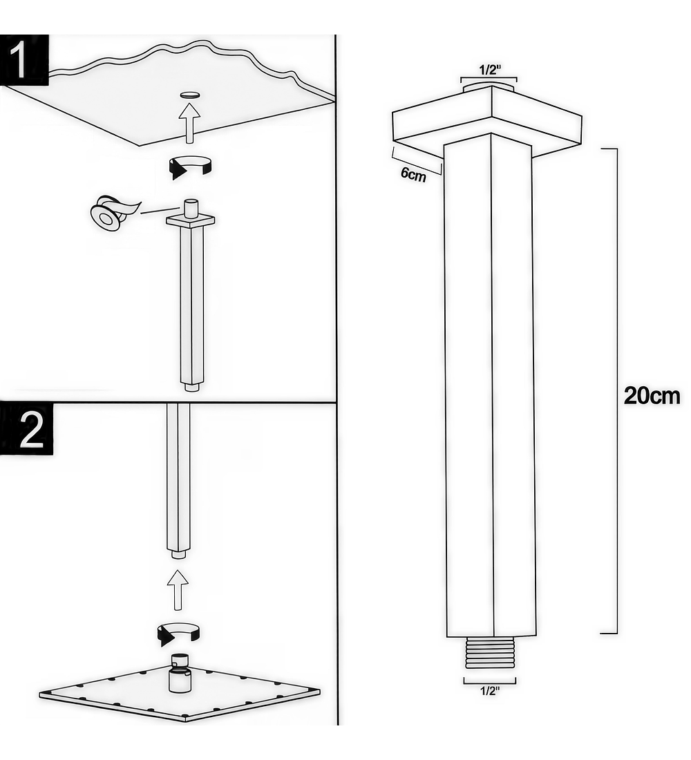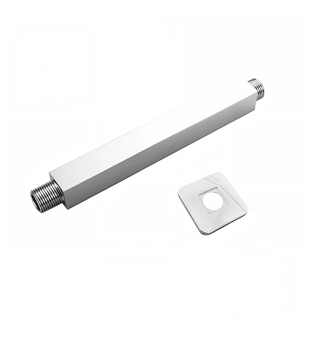 - Elegante brazo de techo fabricado en metal resistente, con diseño cuadrado de 20 cm de largo y acabado en cromo brillante. Aporta un toque moderno y sofisticado a tu baño, garantizando durabilidad y una instalación firme y segura.