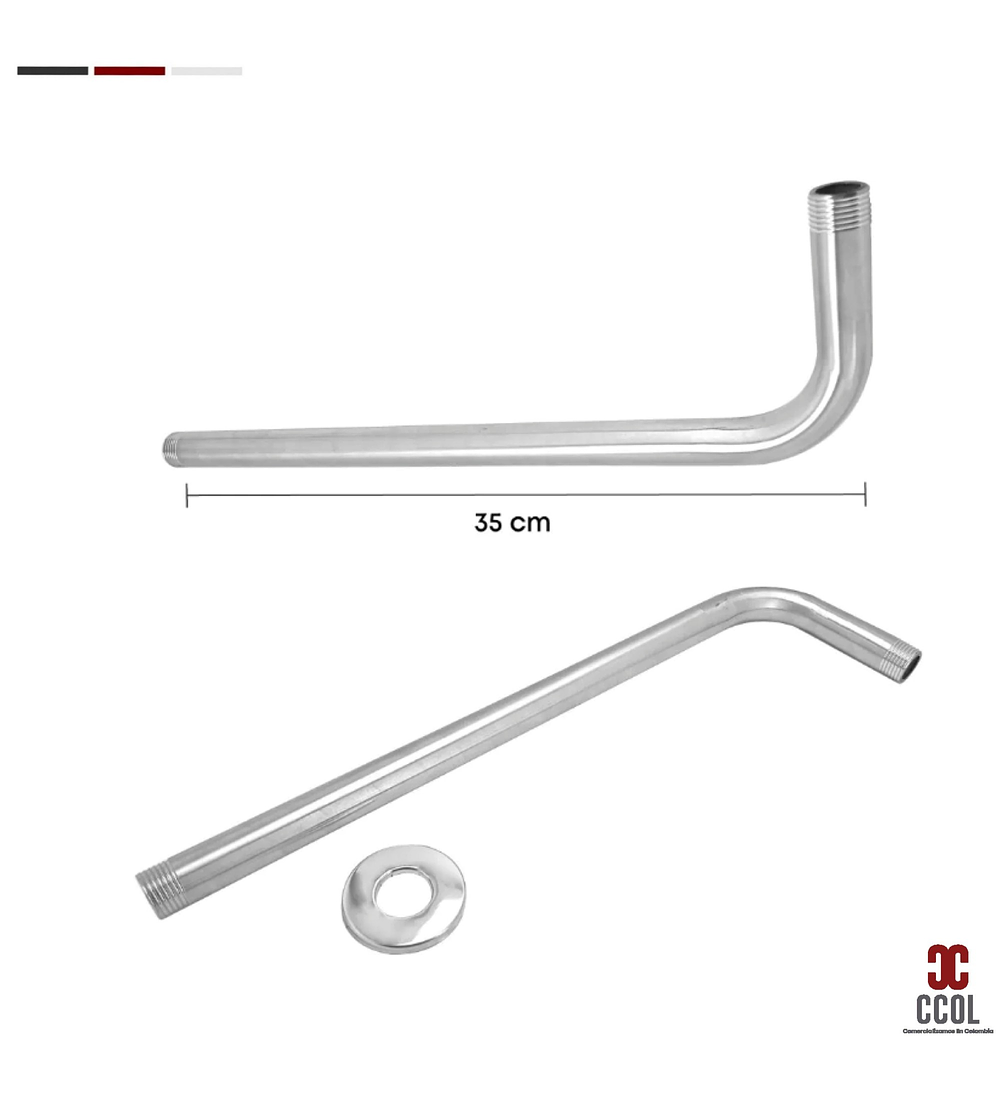 - El Combo de ducha que Incluye una ducha cuadrada de 20 cm y un brazo de 30 cm, ambos en acero inoxidable, con un escudo protector y un registro de agua en acero inoxidable y bronce, garantizando durabilidad y estilo para tu baño.