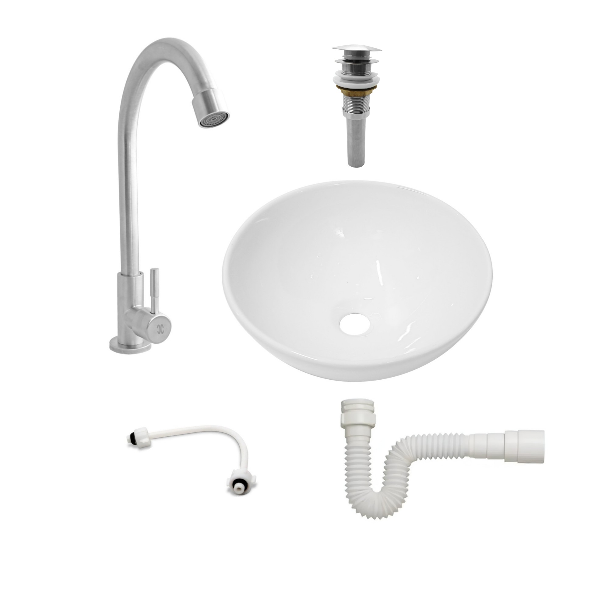 - Este combo ofrece una solución completa y versátil para tu baño. El lavamanos blanco ovalado brinda calidad y estilo, mientras que la grifería asegura un rendimiento óptimo y sin goteos.