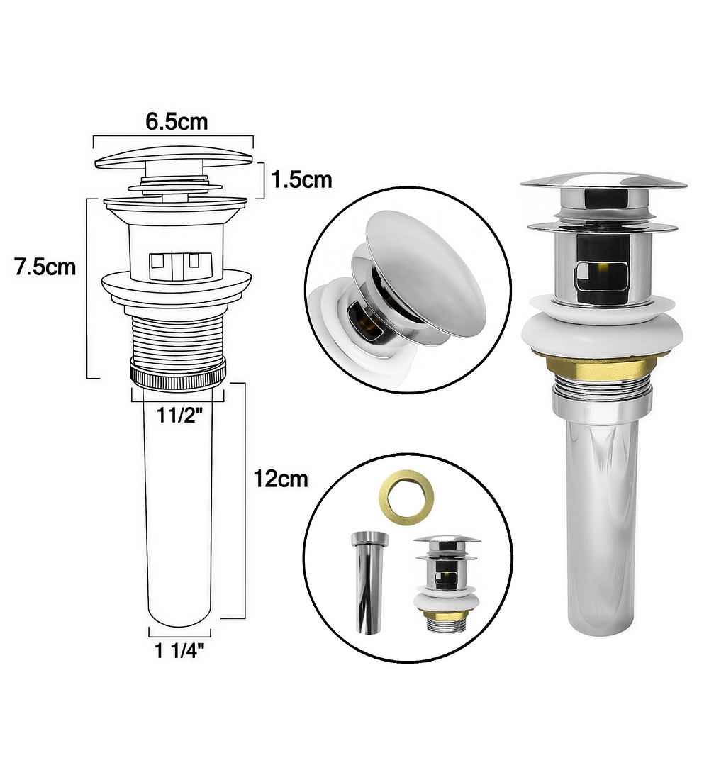 - Sistema: Push Up (Desagüe) y Push Down (Sellado).