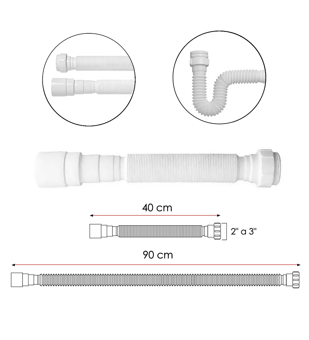 - Sifón Flexible Blanco Multiusos