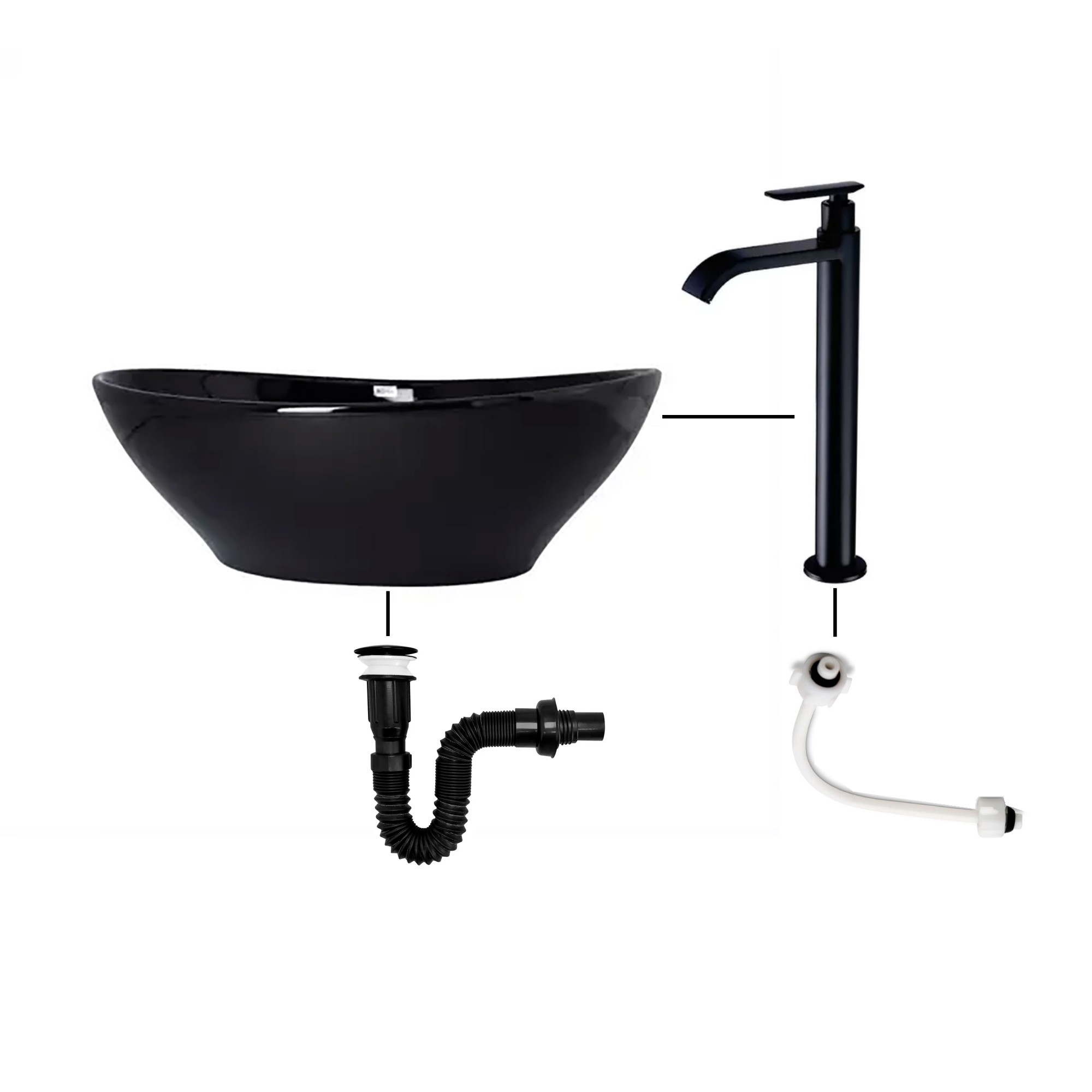 - Combo lavamanos ovalado brillante negro, cuenta con lo necesario para instalar tu lavamanos, te brinda un combo moderno, elegante y adecuado para cualquier espacio.