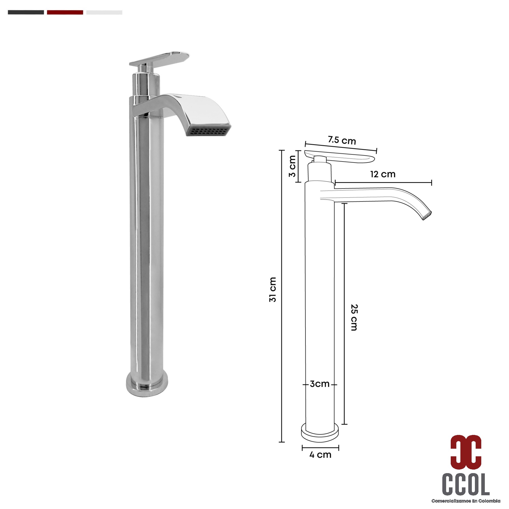 - Grifería Lavamanos Alta Agua Fría Cascada Metálica Cromada