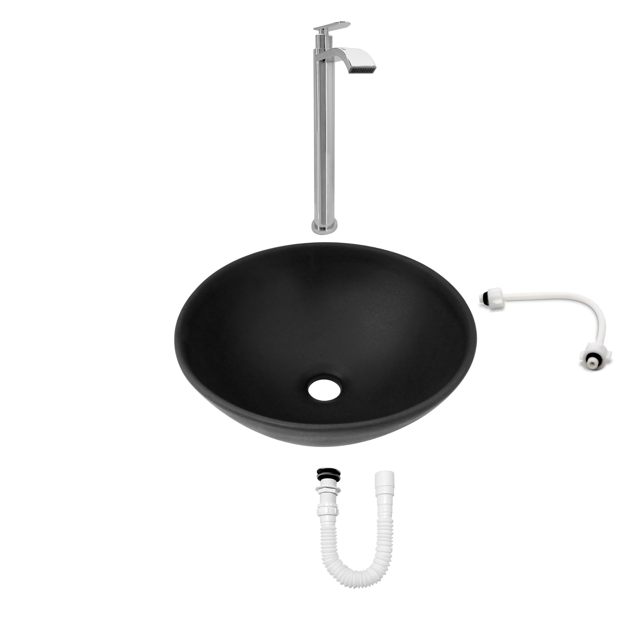 Combo Lavamanos Negro + Griferia Agua Fria + Accesorios C737