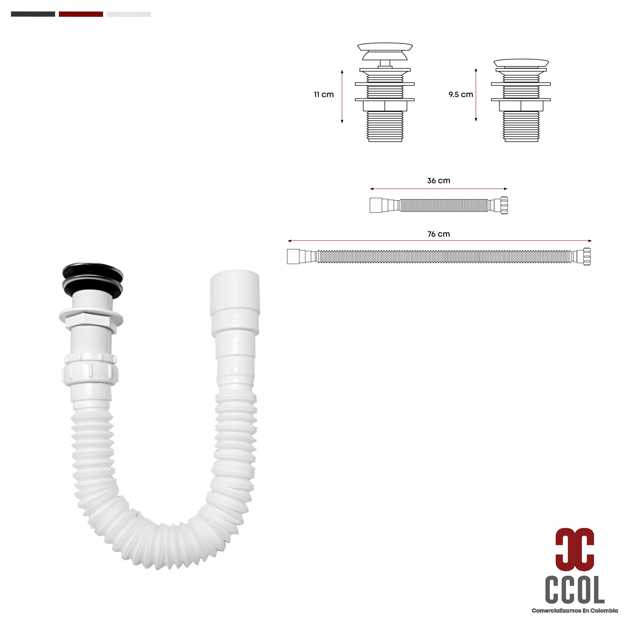 - Medidas Sifón: 36cm - 76cm Largo.