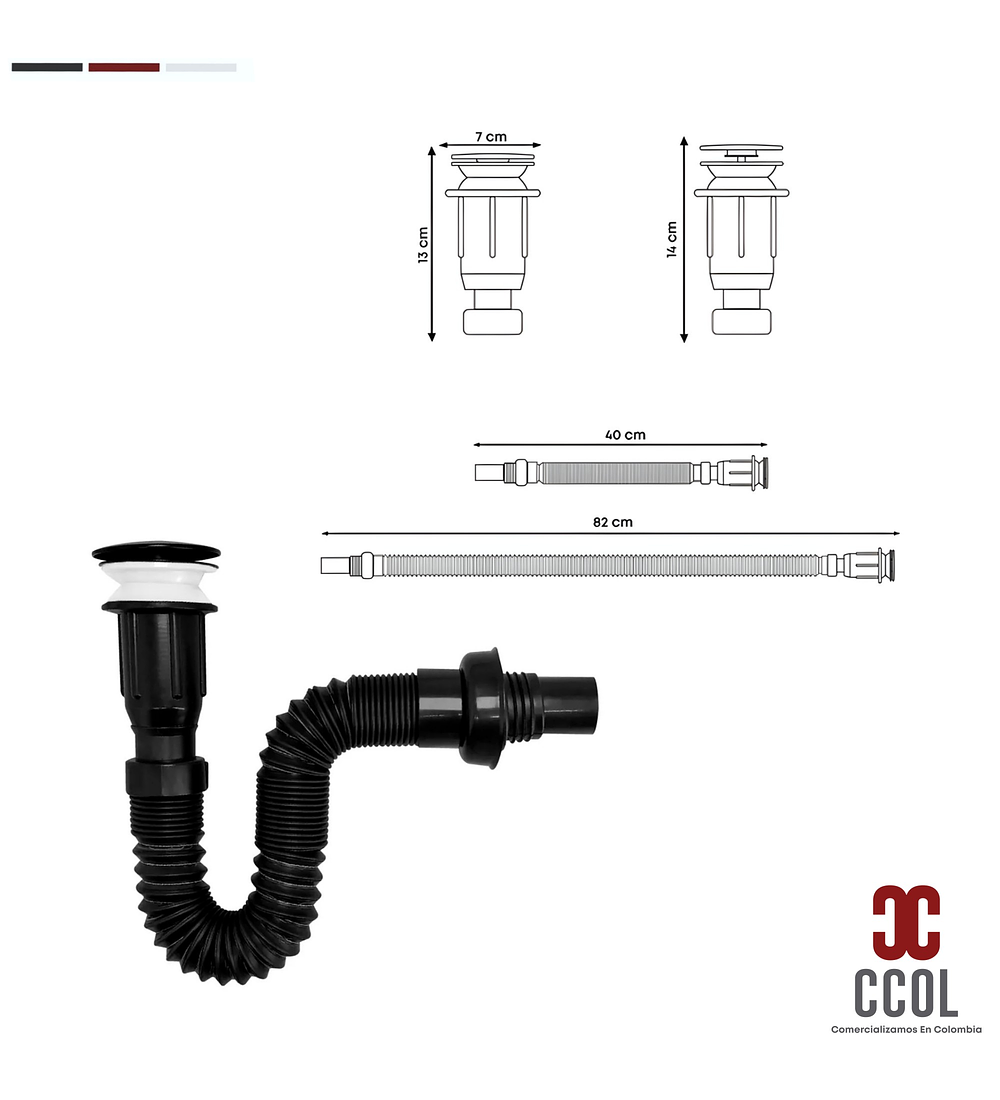 - Medidas Sifón: 82cm - 40 cm Largo.
