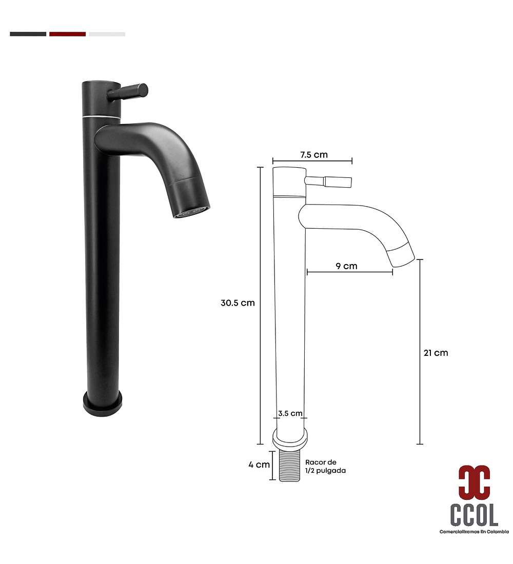 - Grifería Lavamanos Alta Agua Fría Negro