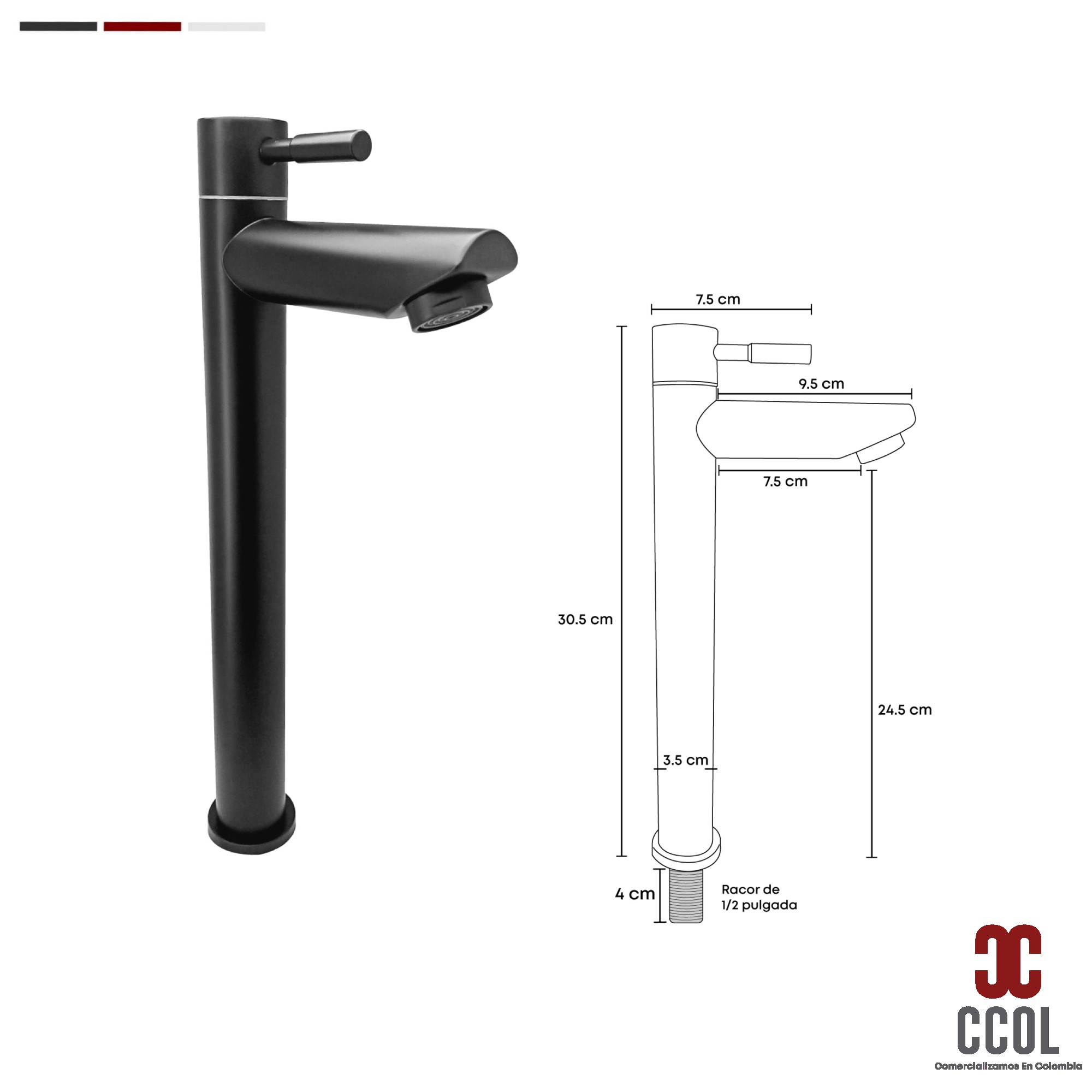 - Grifería Lavamanos Alta Agua Fría Negro