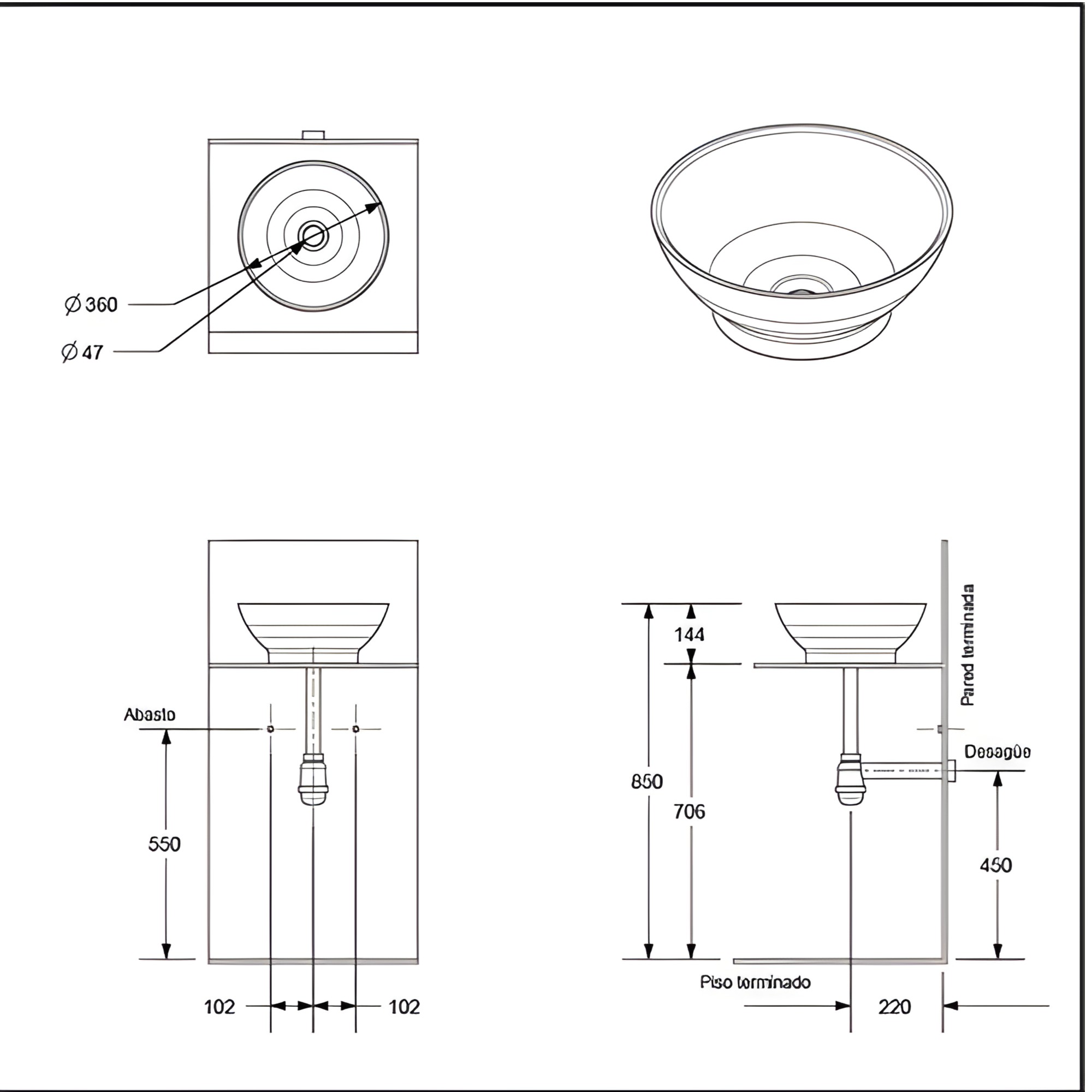 - Uso: Desagüe lavamanos.