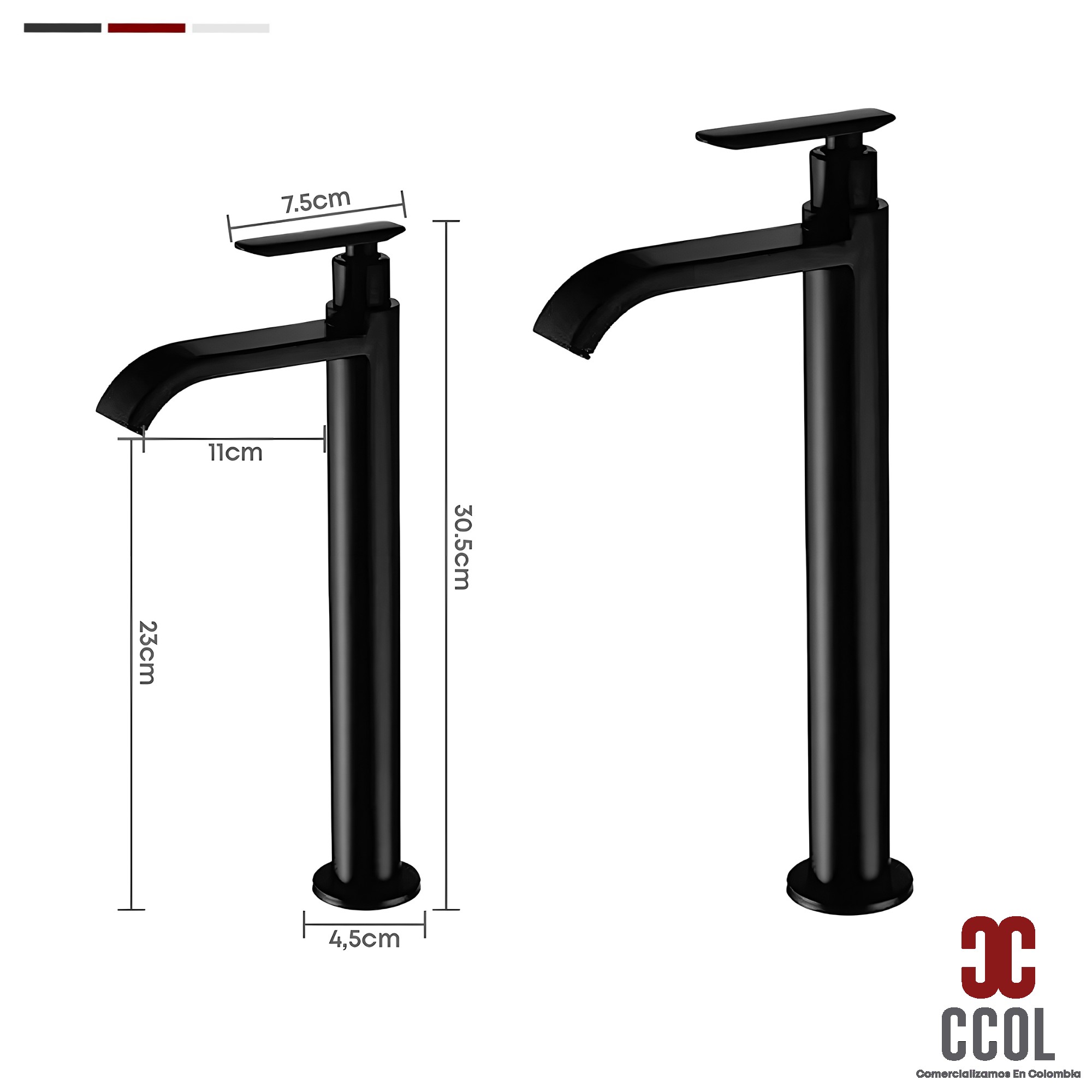 - Grifería Lavamanos Alta Agua Fría Cascada Metálica Negro