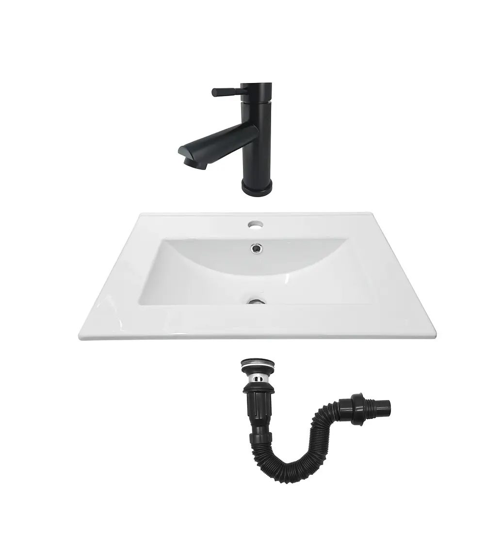 Combo Placa Lavamanos Blanco 61x46 + Grifería Mezclador C617