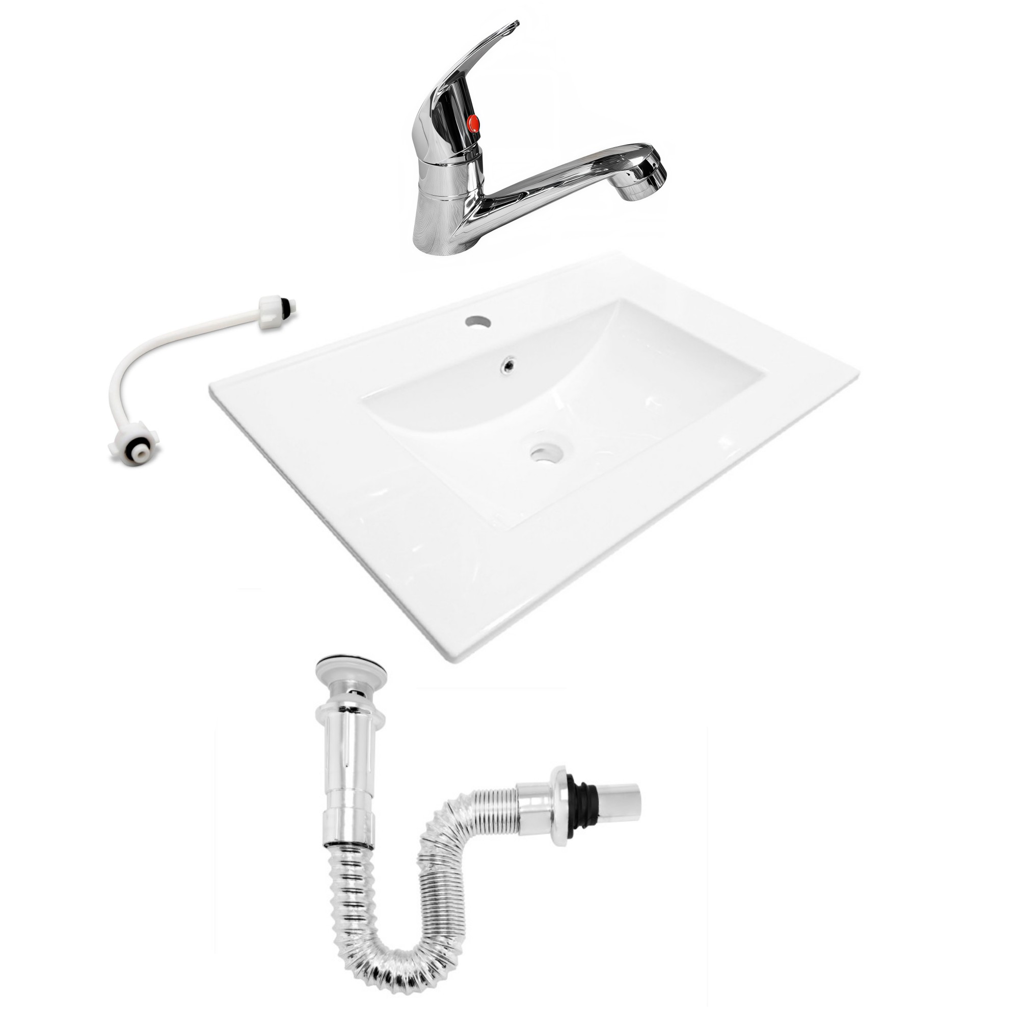 Combo Placa Lavamanos + Griferia Agua Fria + Sifon + Push