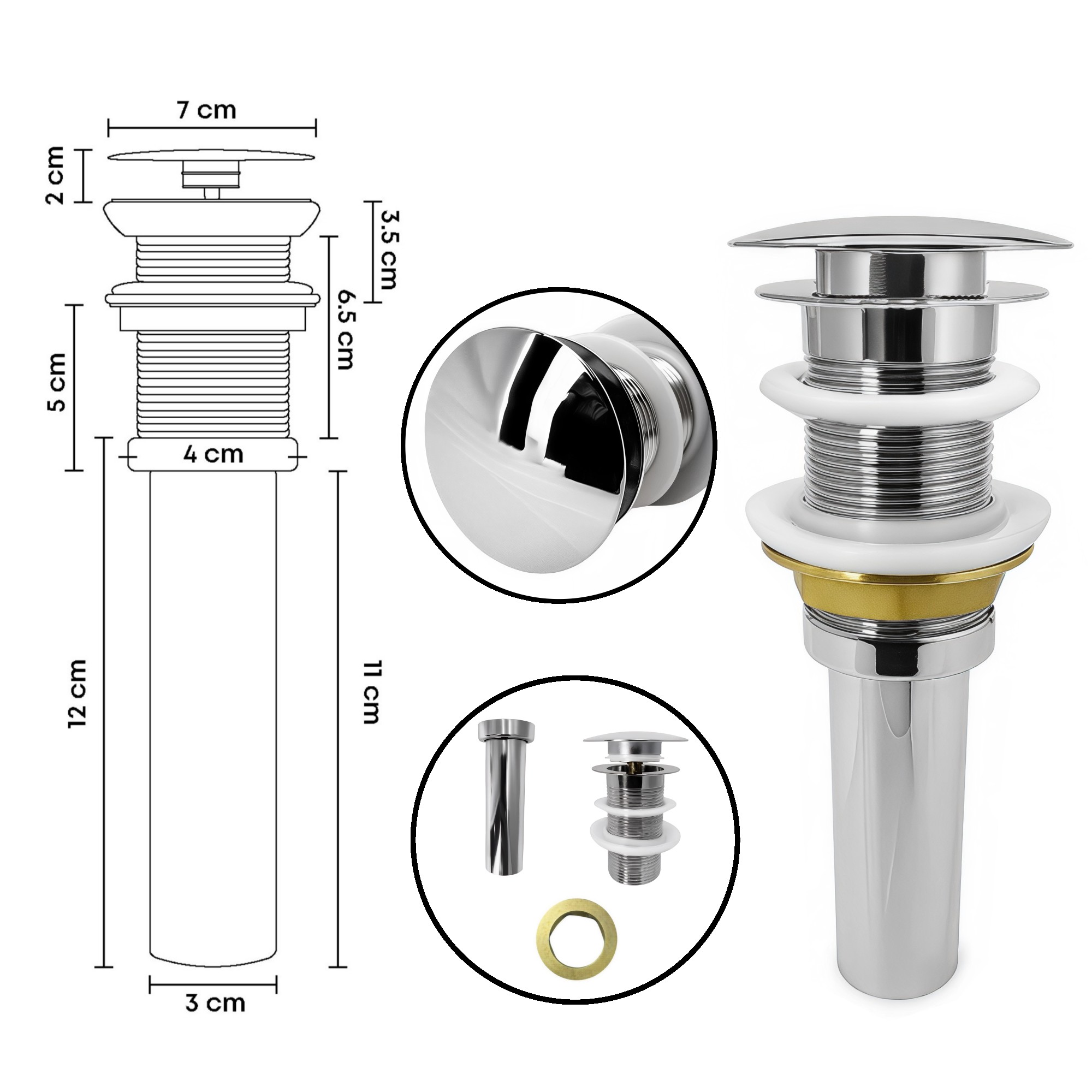 - Sistema: Push Up (Desagüe) y Push Down (Sellado).