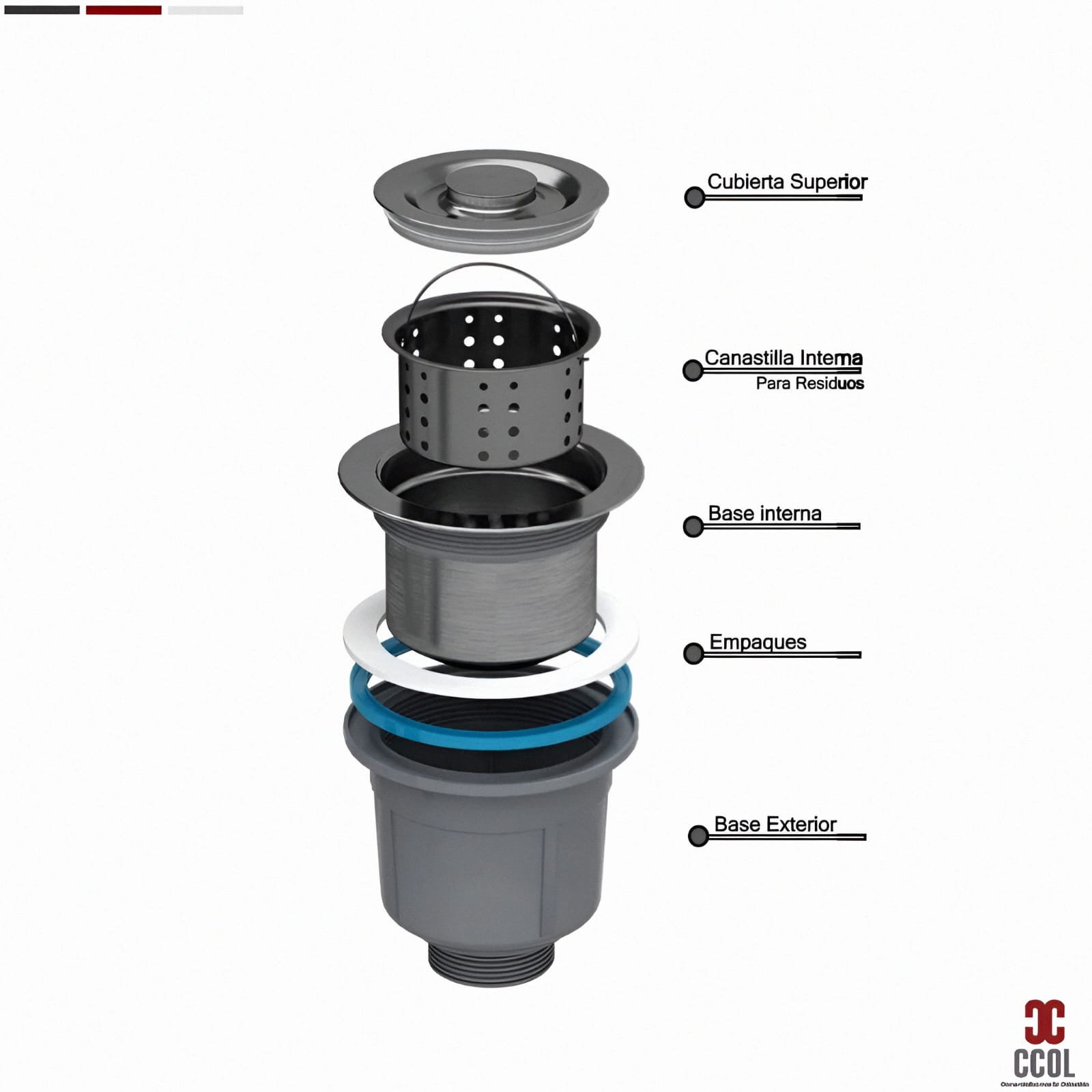 - Canastilla para lavaplatos entrada de 4" y conexión de 1 1/2" fabricada en acero inoxidable 304 recubierta en PVC. Te brinda una canastilla de excelente calidad y con el mejor diseño para tu lavaplatos, cuenta con canastilla para los residuos y con tapa.
