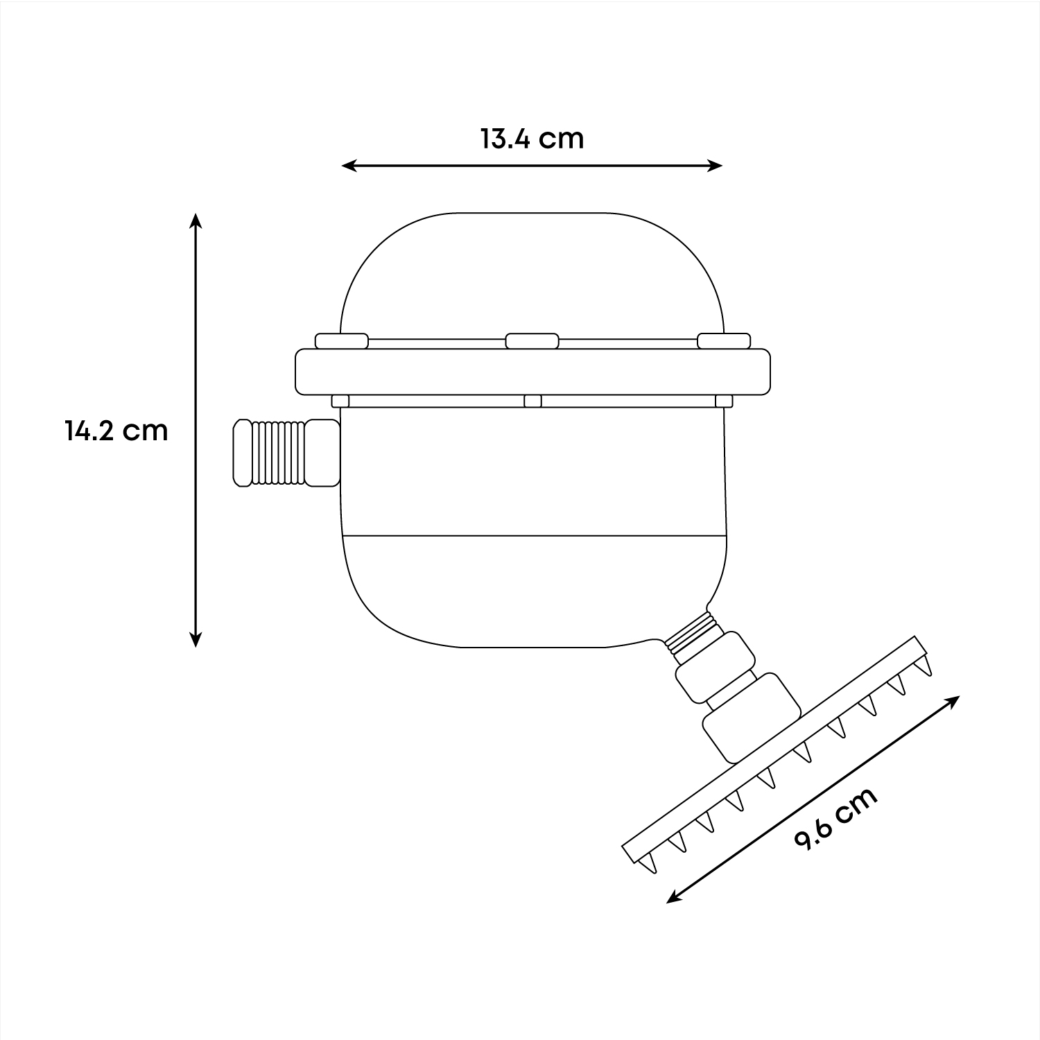 - Medidas ducha eléctrica: 14,2cm Alto x 13,5cm Diámetro.