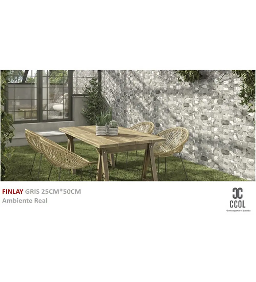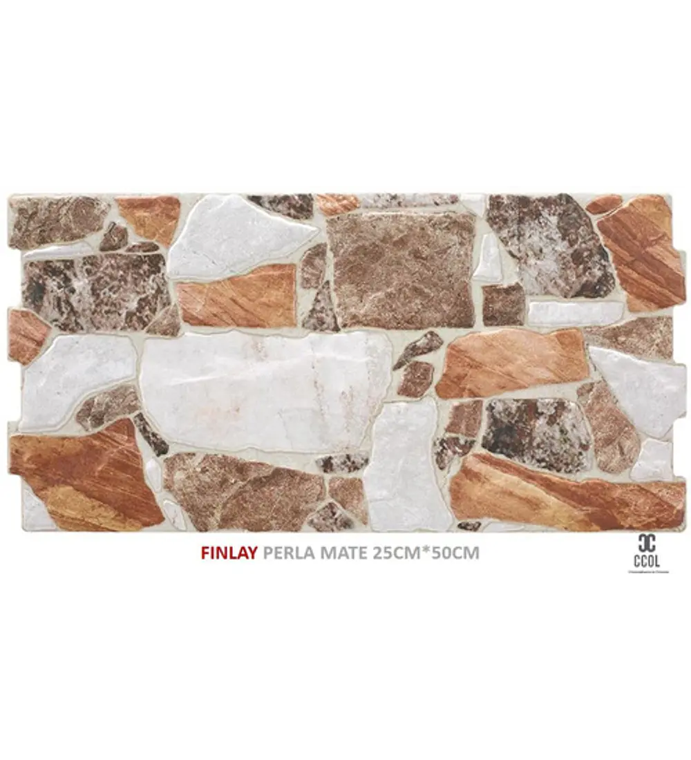 La Serie FINLAY es un azulejo de pasta roja imitación piedra con formato 25×50 que consta de relieve para simular a la perfección a la piedra. Esta impreso en diferentes gráficas y presenta una destonificación media. Los colores de esta serie son: beige, gris, perla.