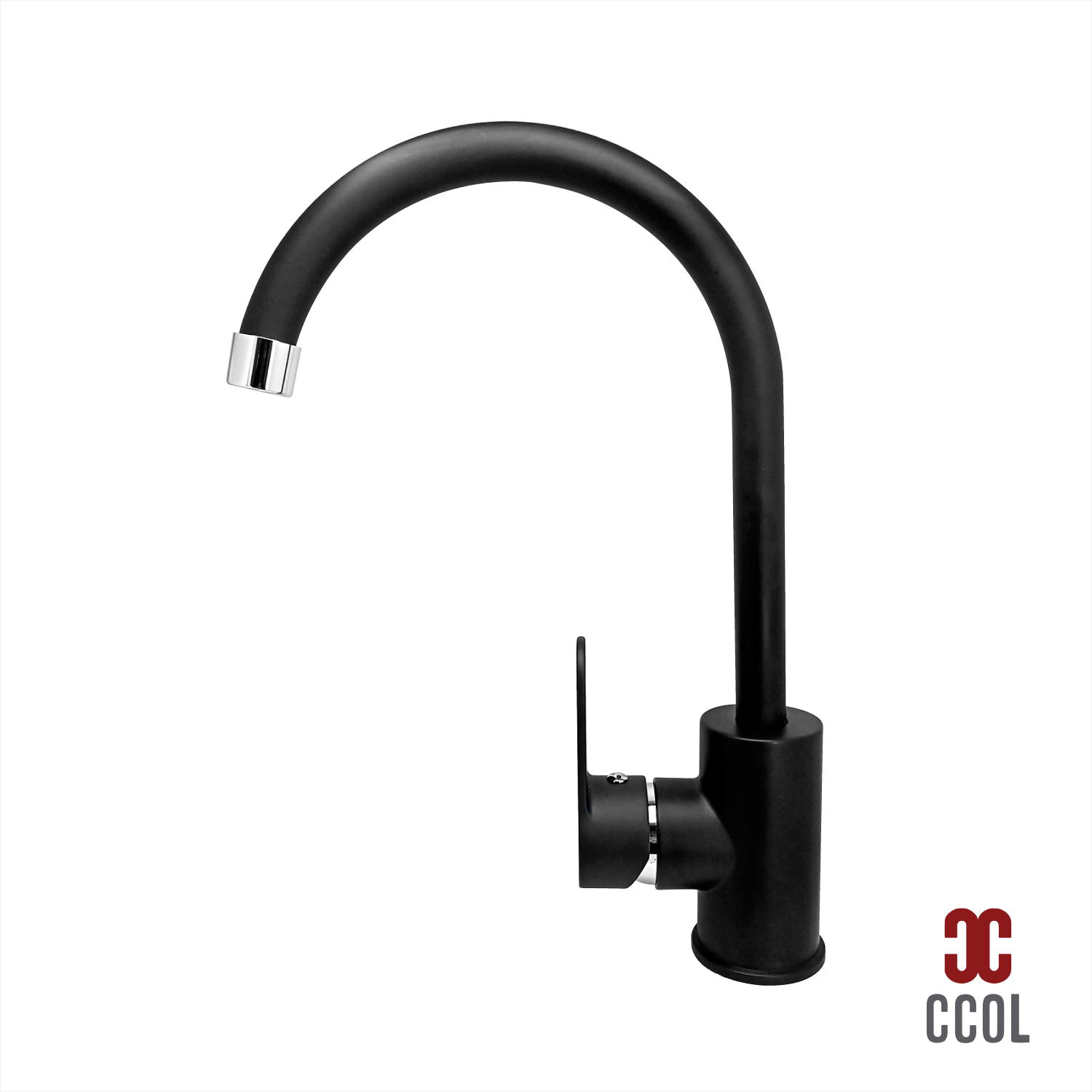 Griferia Lavaplatos Mezclador Cuello Cisne Abs Negro Colomba