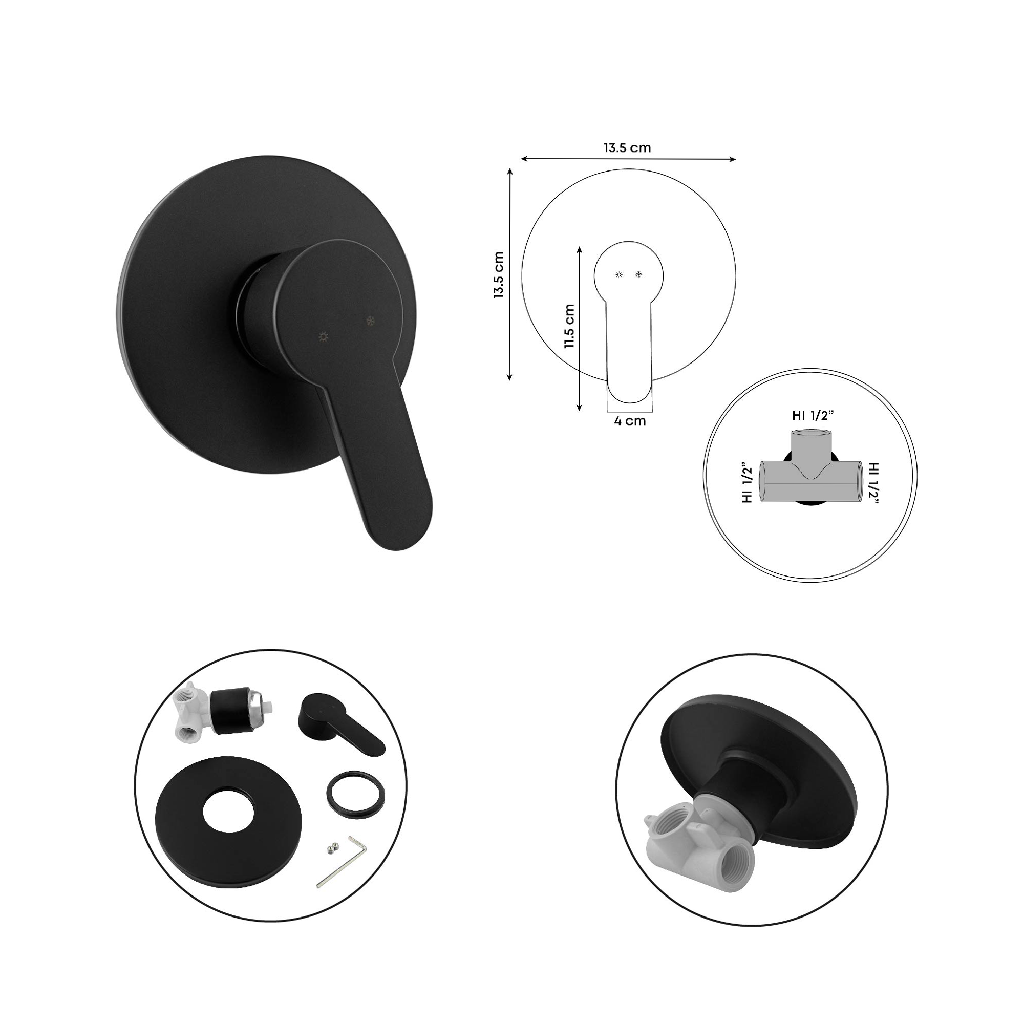 - Monomando Mezclador en PVC negro, Escudo y Manija metálico