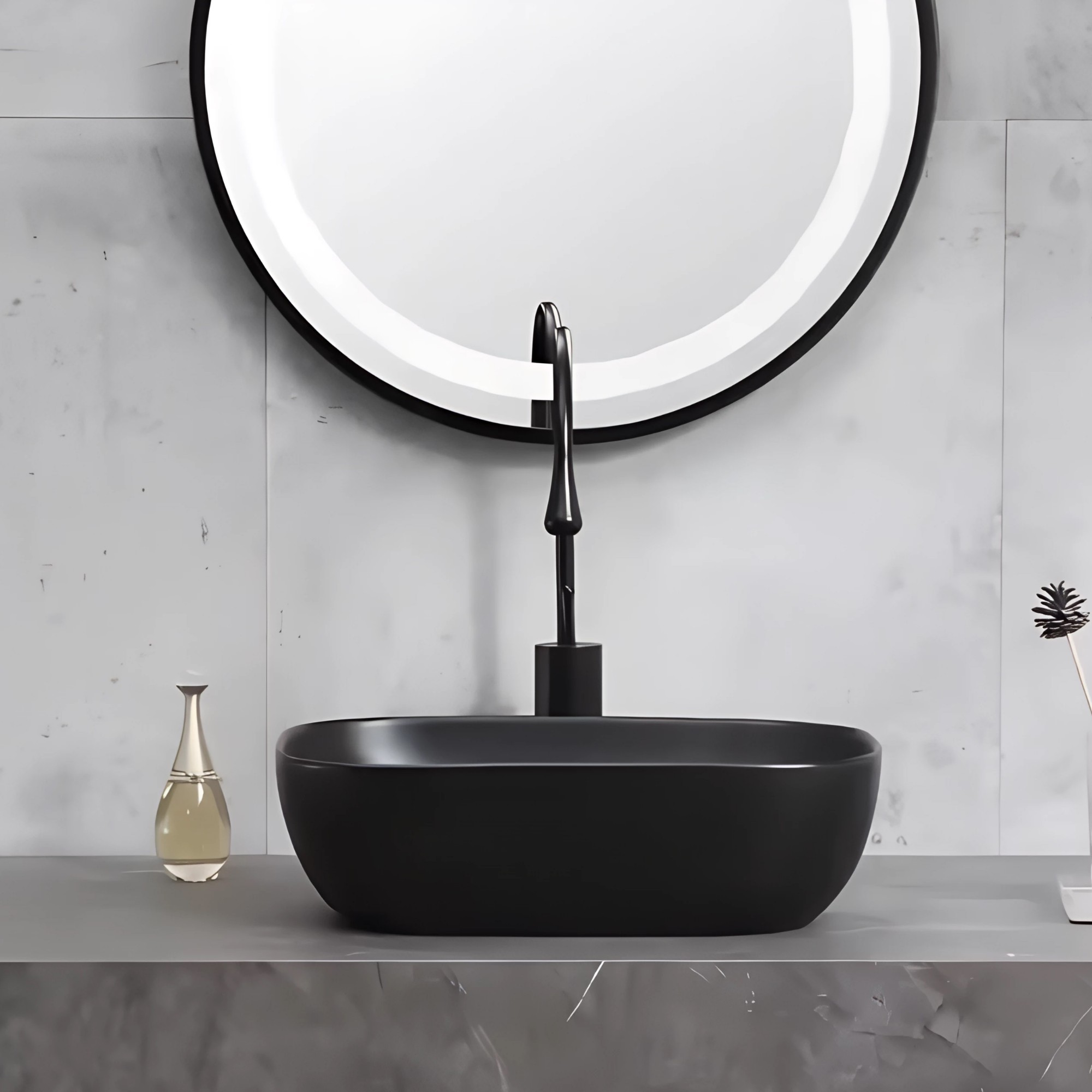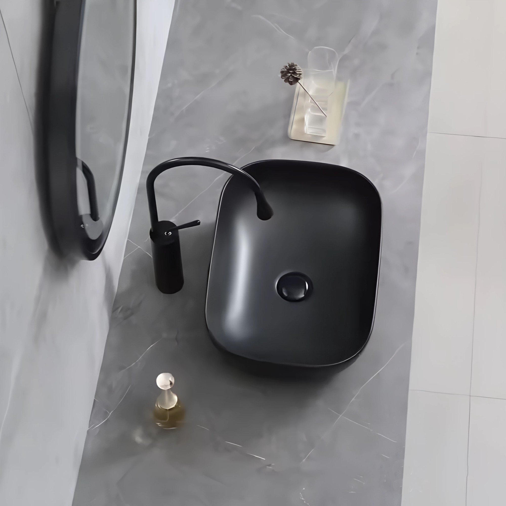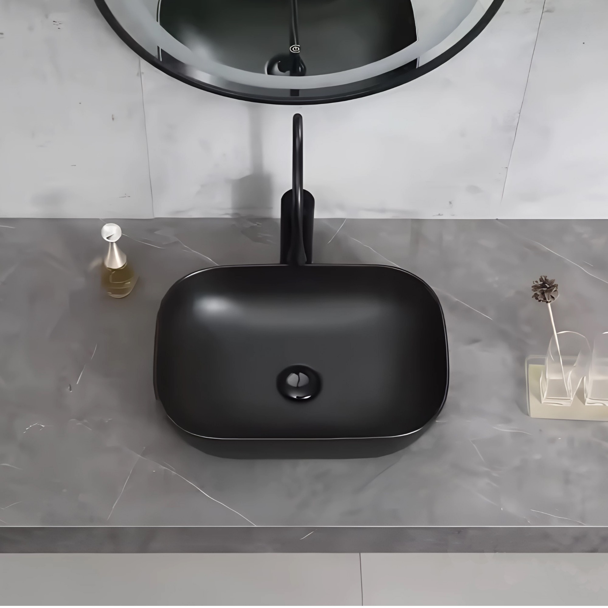 - Lavamanos Cerámica Sobreponer Rectangular Semicurvo Negro