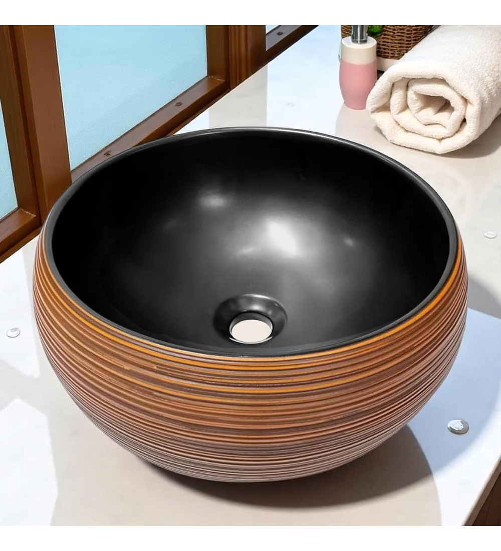 - Lavamanos Rústico Redondo Marrón Saturno