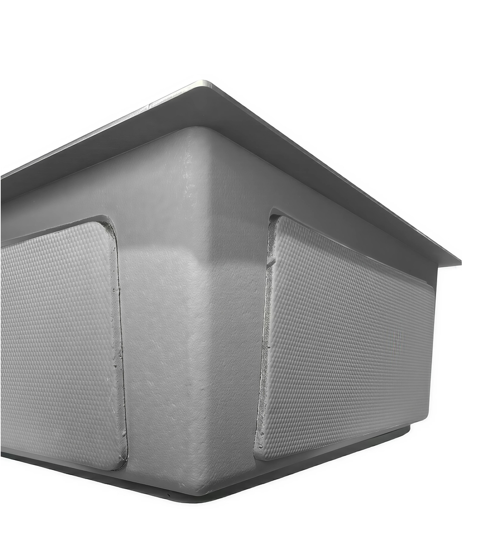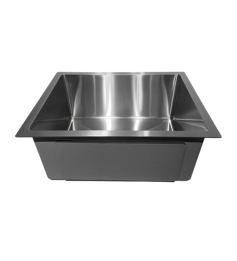 - Lavaplatos en acero inoxidable de alto calibre con recubrimiento en fibra, instalación inferior y esquinas fáciles de limpiar. Durable, resistente y moderno.