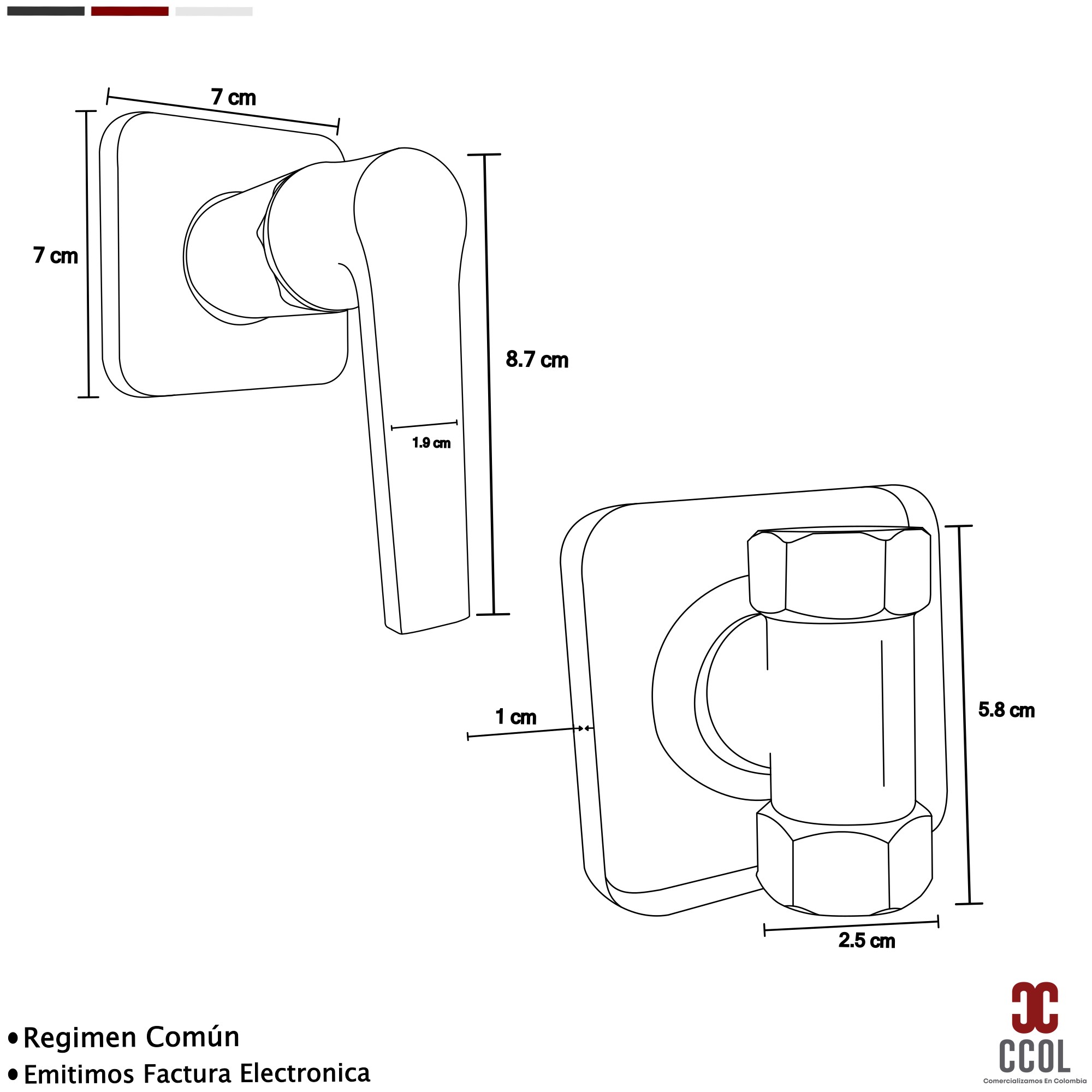 - Manija Cuadrada Cromada Agua Fría Para Ducha + Cuerpo T