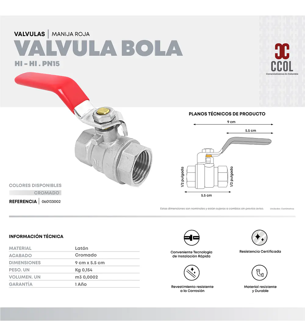 - Conexión: 1/2 - 1/2 pulgada.