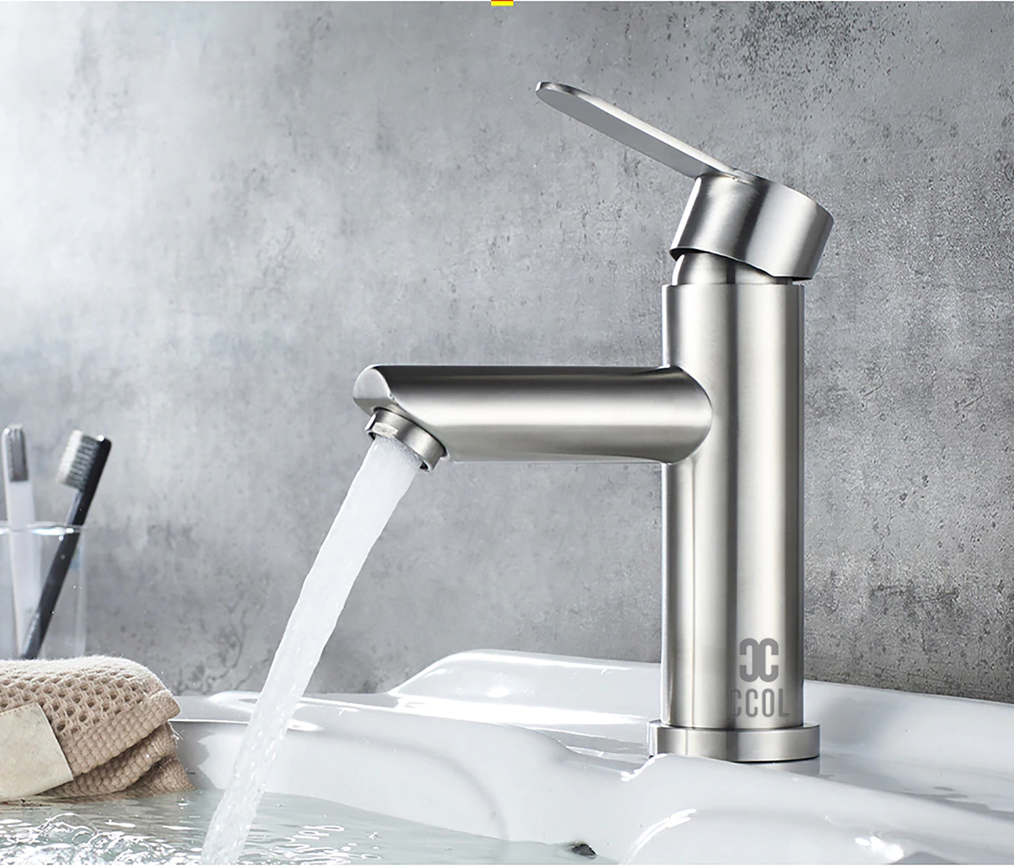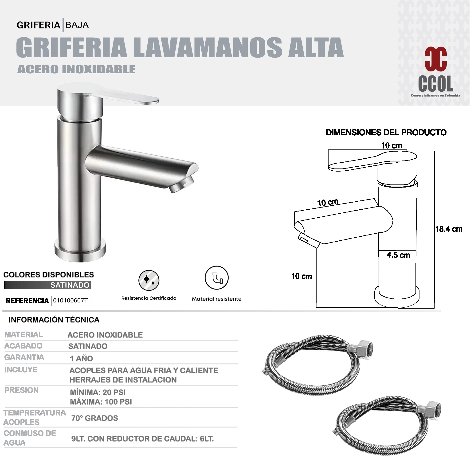- Monocontrol Mezclador Lavamanos Poste Bajo En Acero Inox 304