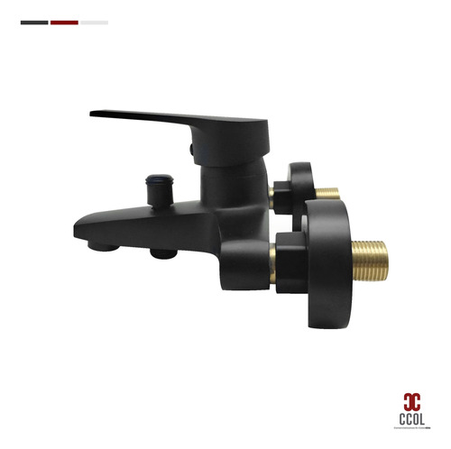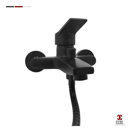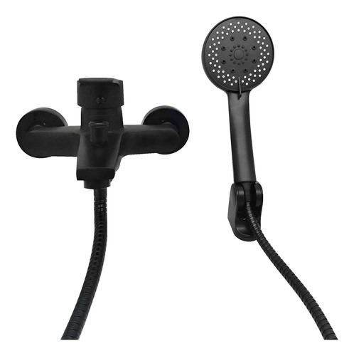 - Este grifo de bañera y ducha de mano de estilo moderno tiene un acabado en negro mate y ofrece 3 funciones. Cuenta con una sola manija para controlar agua fría y caliente. Su instalación es montada en la pared.