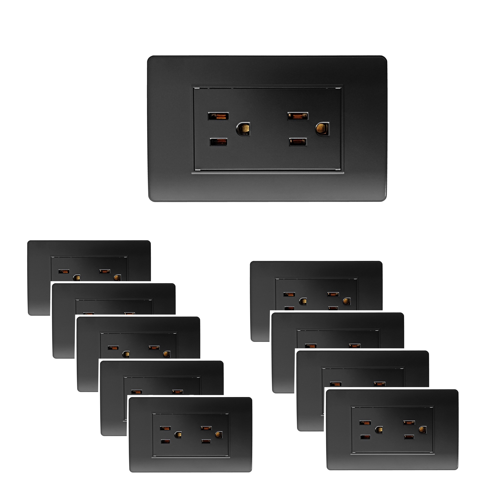 - Pack X 10 Unidades Toma Corriente Doble Negro C772