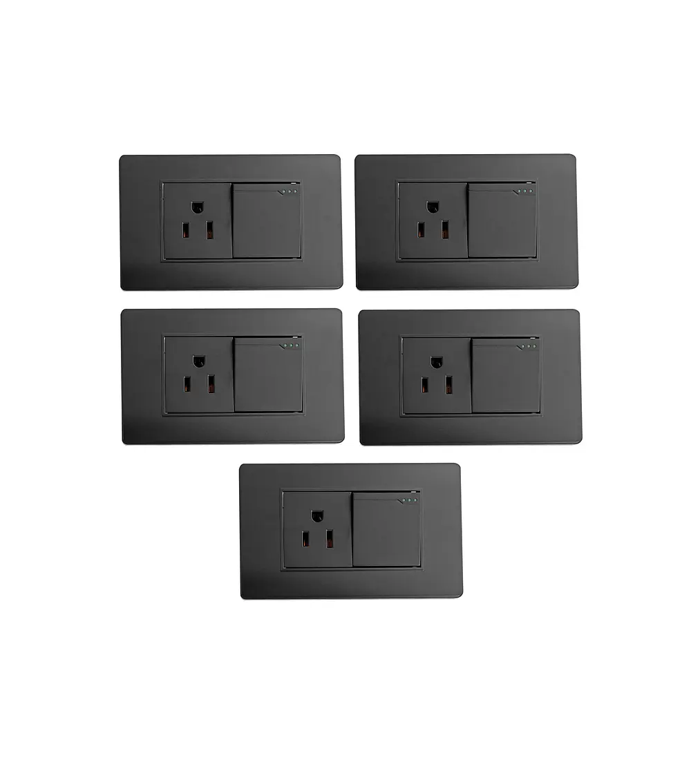Pack X 5 Unidades Toma + Interruptor Negro C769