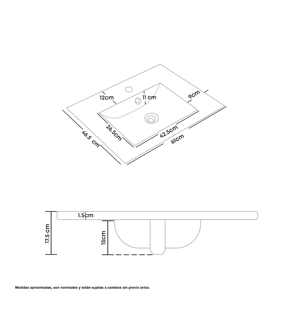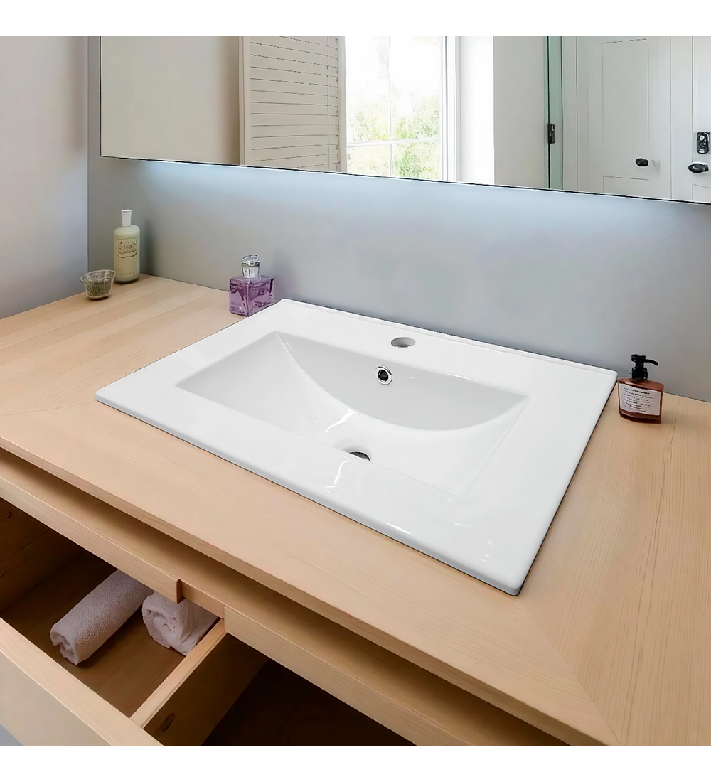 - Este lavamanos rectangular blanco para submontar ofrece una excelente calidad, siendo una opción ideal para tu baño. Está diseñado con un sistema de rebose y cuenta con un orificio específico para la instalación de la grifería.