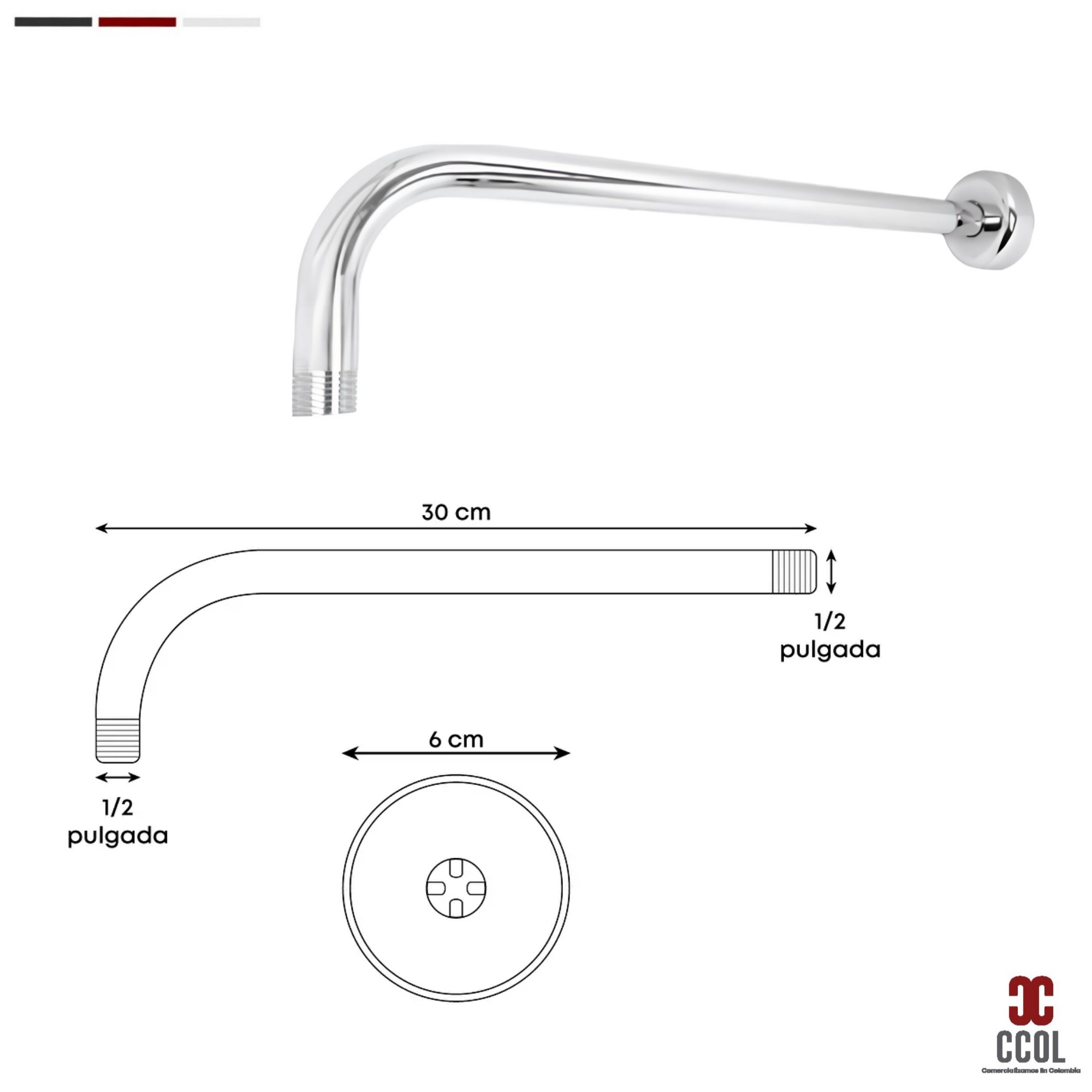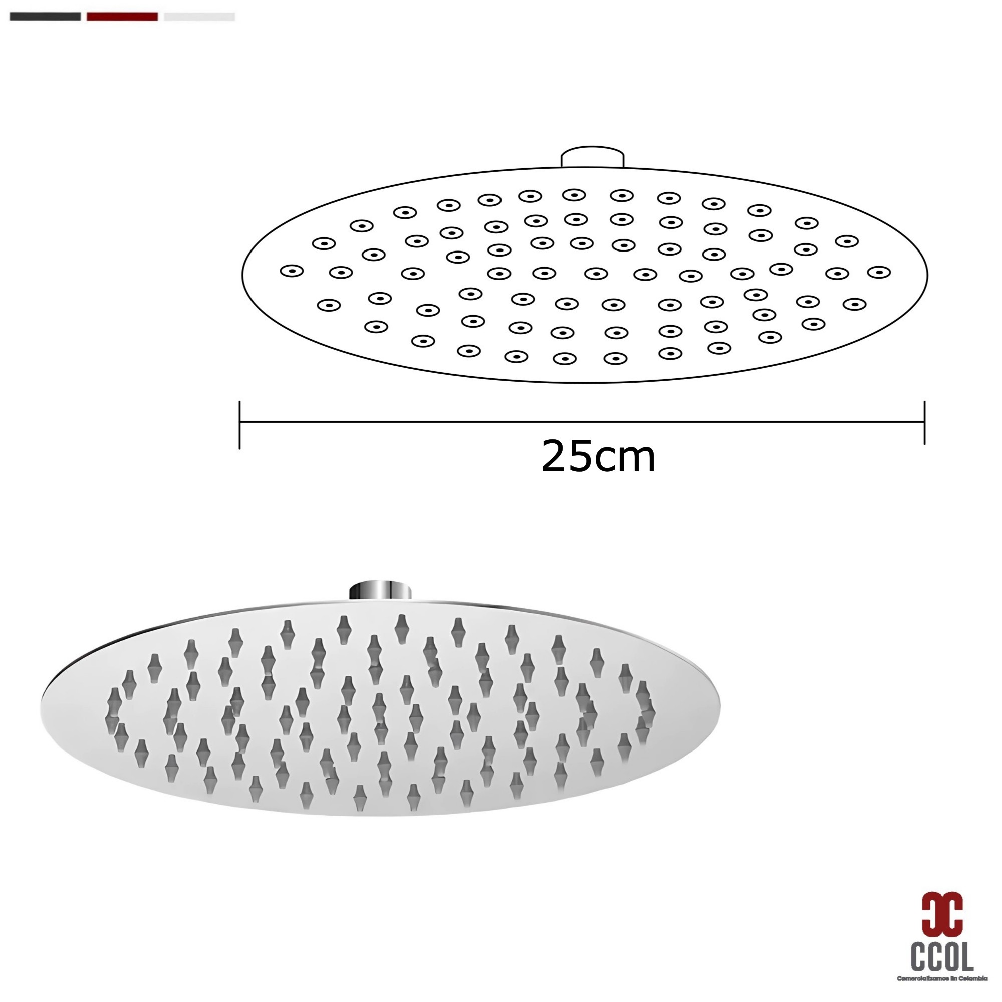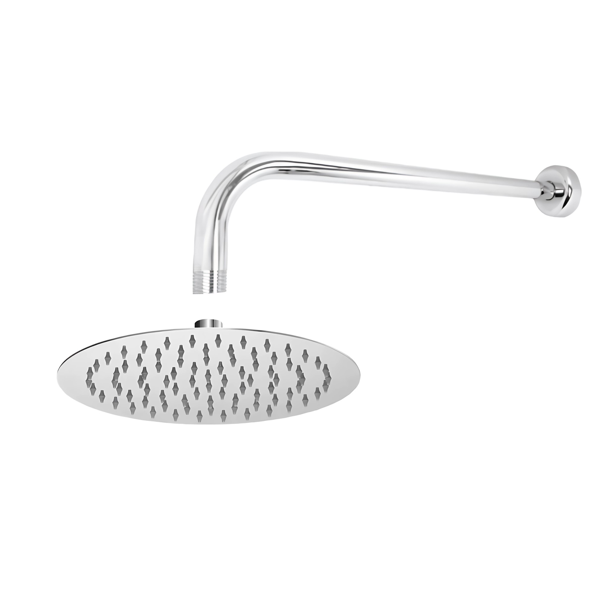 - Combo de ducha redonda fabricado en acero de alta calidad con acabado cromado, diseñado para aportar un toque moderno y elegante a tu baño. Incluye brazo de ducha, ofreciendo una experiencia de uso cómoda y funcional.