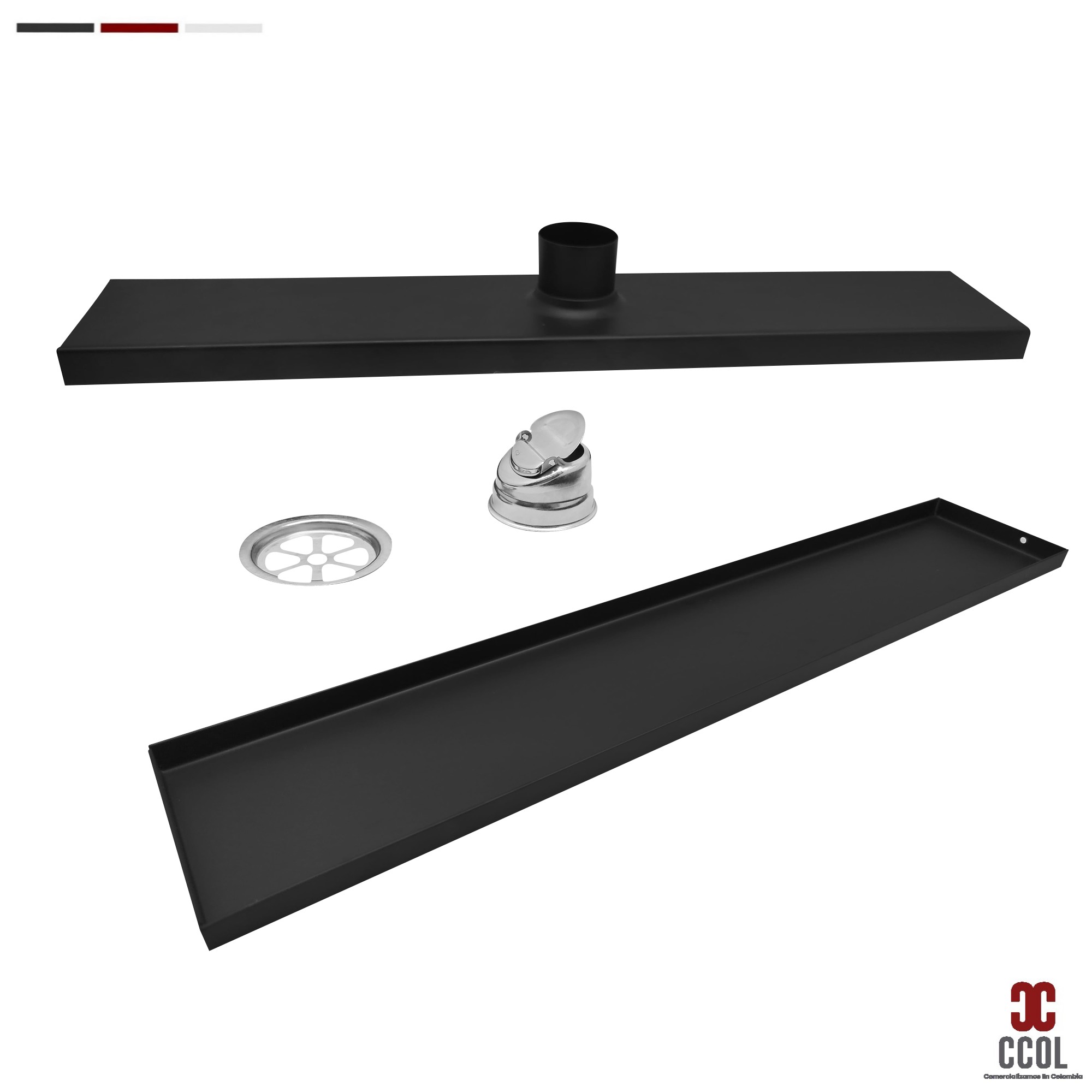 - Rejilla de piso invisible de acero inoxidable 304 con acabado negro mate, ideal para tu baño, cocina o patio. Cuenta con un sistema innovador antiolores y anticucarachas, ofreciendo funcionalidad y estética en un solo producto.