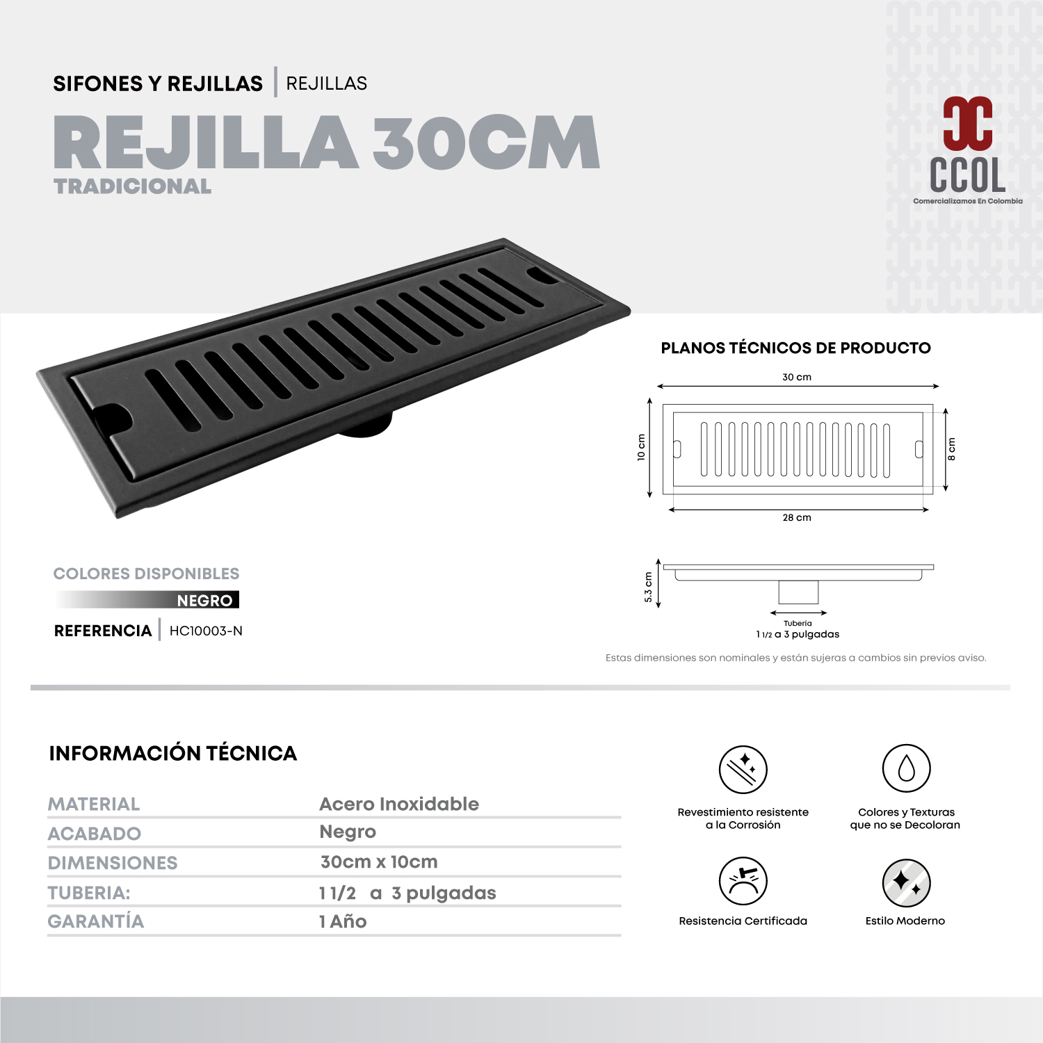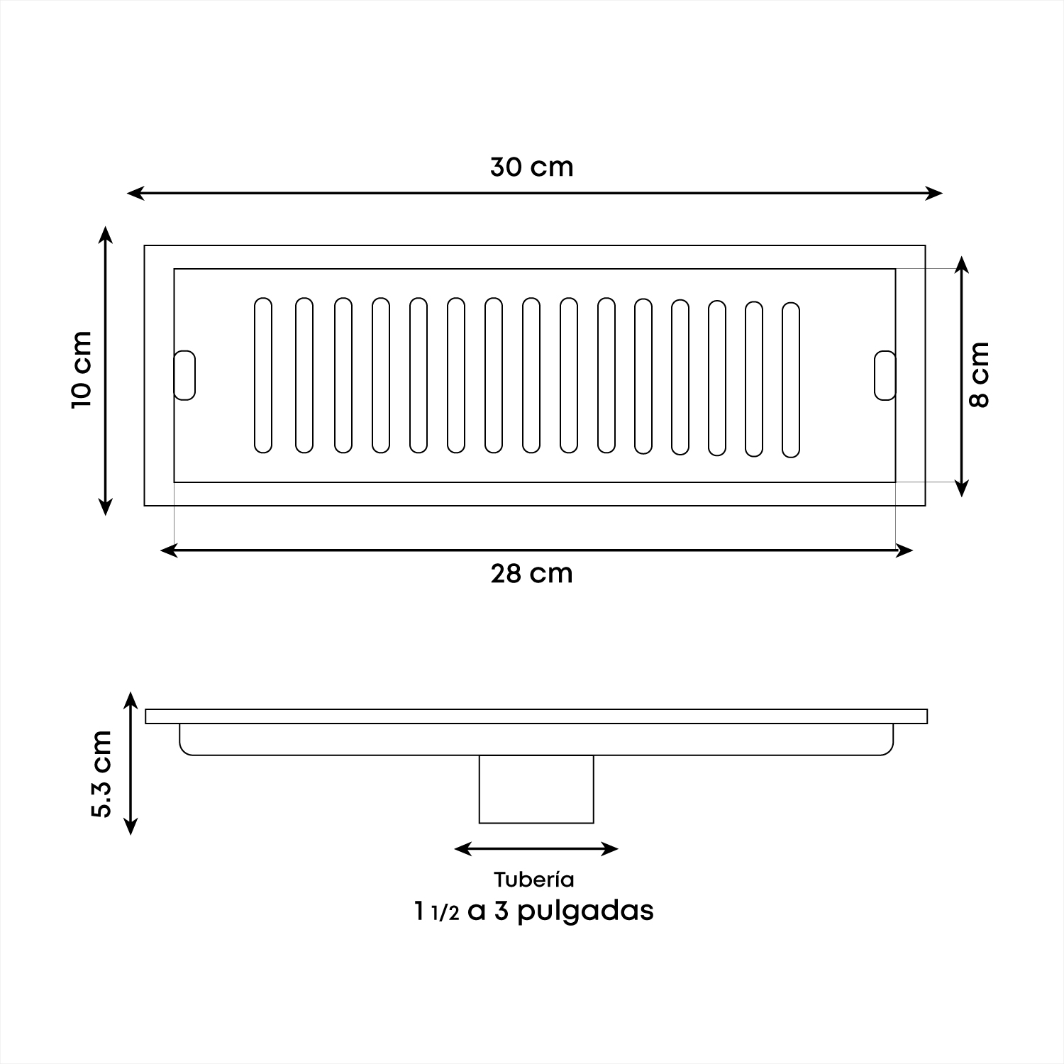 Rejilla Rectangular Piso Tradicional acero 304 30cm x 10cm