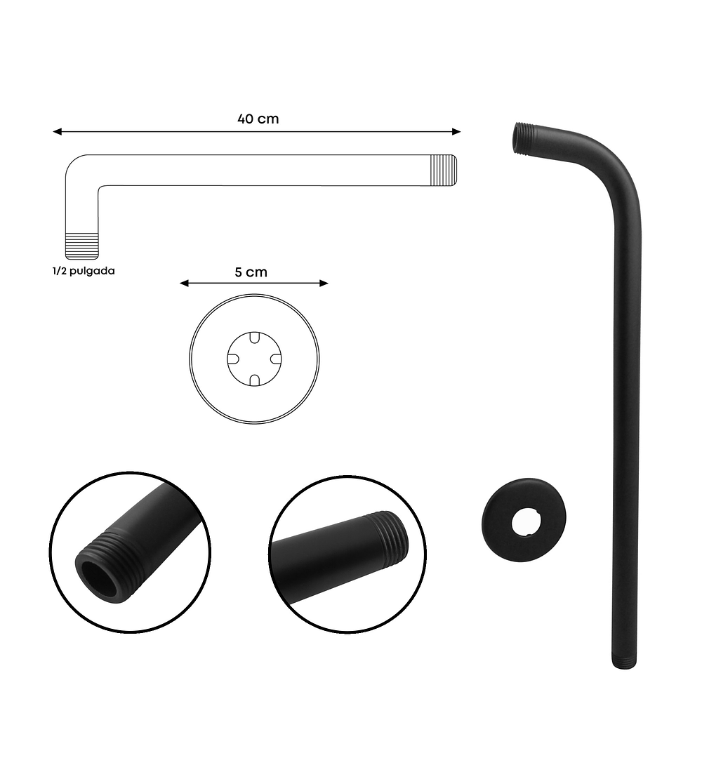 - BRAZO CILINDRICO METALICO 40CM A MURO NEGRO