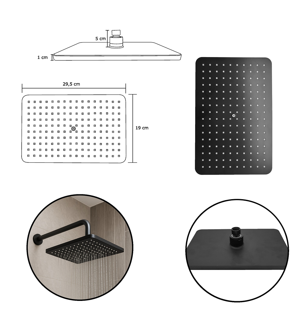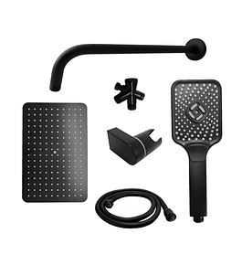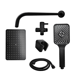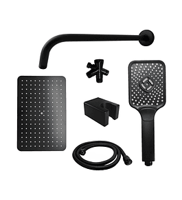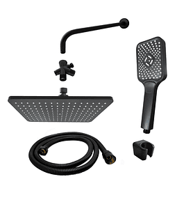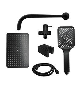 - Combo de ducha con acabado negro mate, ideal para dar un toque elegante a tu baño. Incluye ducha principal, desviador y teleducha, ofreciendo versatilidad y comodidad para diferentes usos durante el baño.
