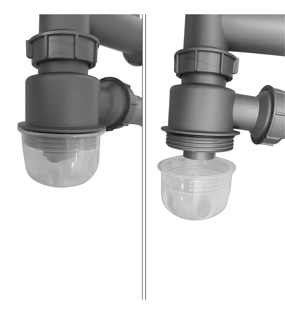 - Set de lavaplatos que incluye una Canastilla de entrada de 4" y conexión de 2" fabricada en acero inoxidable 304 recubierta en PVC. Esta canastilla ofrece excelente calidad y un diseño óptimo para tu lavaplatos. Cuenta con una canastilla para residuos con tapa, acompañada de un Sifón flexible de color gris mate, diseñado específicamente para lavaplatos de una sola poceta. Este sifón permite sacar residuos grandes que podrían obstruir la tubería de desagüe, asegurando una instalación sencilla gracias a sus conexiones flexibles.
