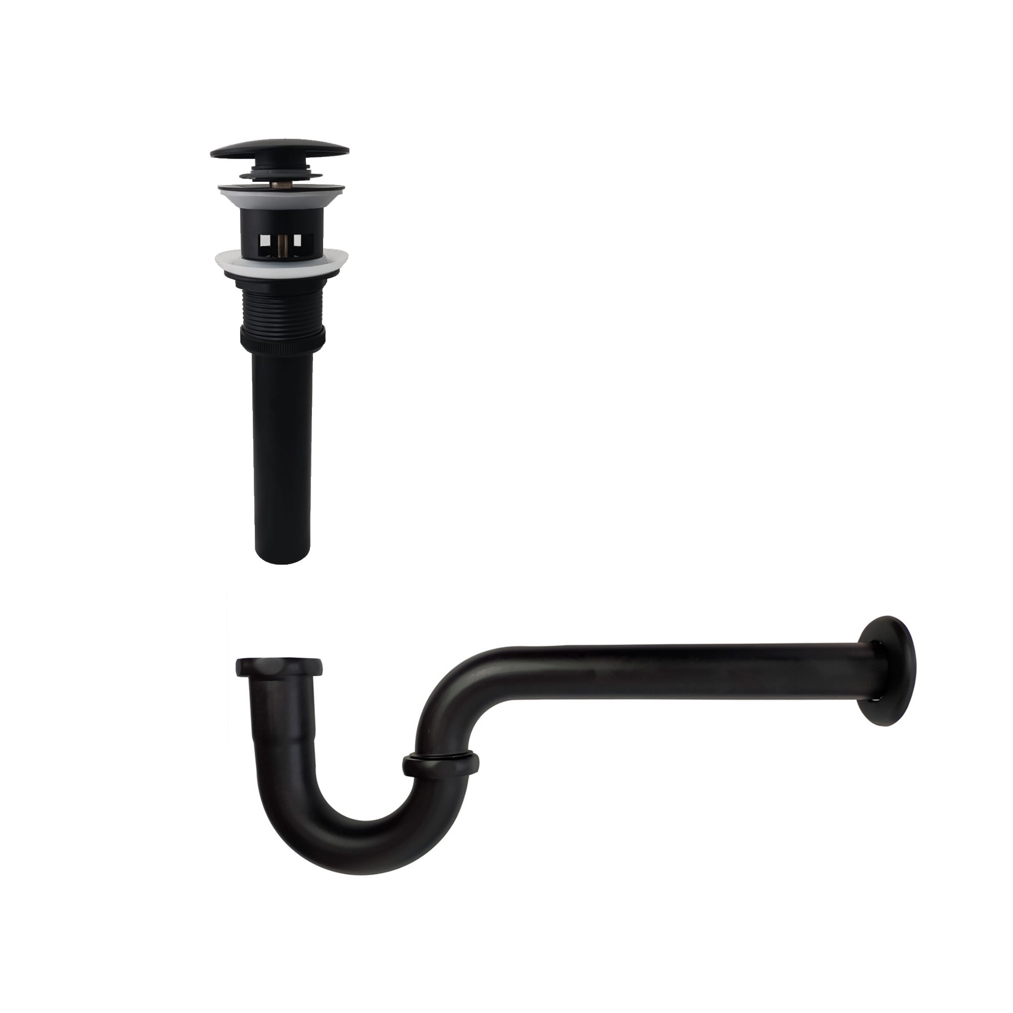 Sifon En P Lavamanos Negro Metálico + Push Negro Con Rebose